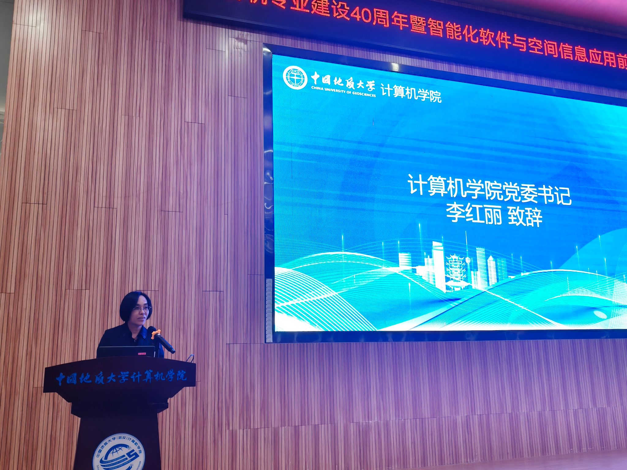随后,学院党委书记李红丽在论坛开幕式上致辞,回顾了学院自2005年建院以来的辉煌历程,并对学院在智能化软件与空间信息应用领域的创新性成果给予了高度评价。李书记指出,学院将在新的发展阶段,继续深化与国内外学术平台的合作,加强学科建设,推动计算机学科高质量发展,为国家科技自强战略贡献力量。