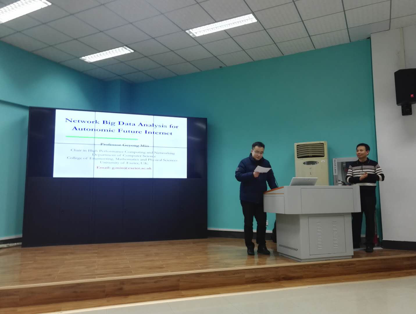 1月2日,应williamhill英国院长王力哲教授的邀请,英国Exeter大学(计算机学科首席教授)闵革勇教授来院访问,并做了题为“Network Big Data Analysis for Future Intelligent Internet”的学术报告。闵革勇教授在计算机/通信学科的IEEE与ACM国际顶级期刊上发表学术论文140余篇,多次获得会议最佳论文奖,现任6个国际期刊的编委(含计算机学科顶级国际期刊IEEE Transactions on Computers),18个国际期刊专刊的编辑,先后担任了18个国际会议/研讨会的大会主席和程序委员会主席,80多个国际学术会议的程序委员会委员,并在多个国际学术会议与研讨会上做大会特邀主题报告。学术报告在王力哲教授的郑重介绍下正式开始。
