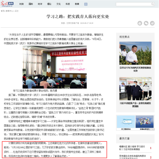 图为19年计科先锋宣讲团被光明日报报道