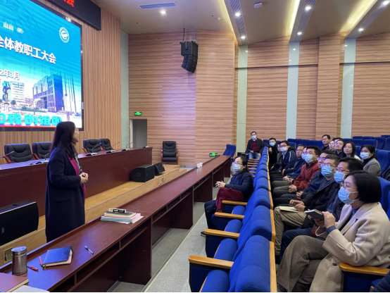 (通讯员:申安琪)3月31日下午,我院于科教一楼报告厅召开新学年首次全体教职工大会,对学院当前的重点工作进行了强调和布置,全院教职工参加会议,院长王力哲主持会议。