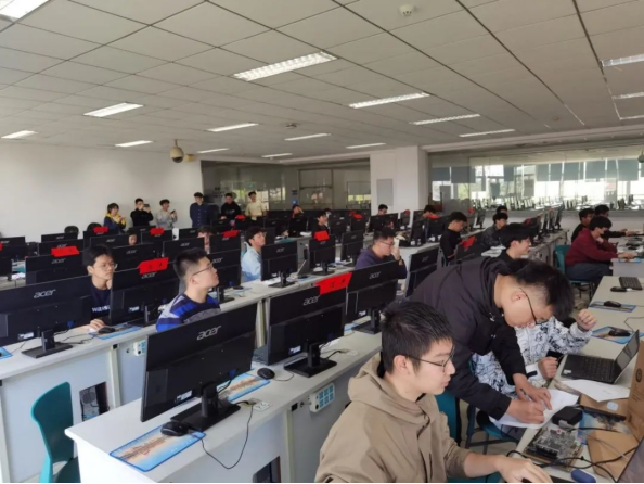 为配合疫情防控工作,避免人员聚集,决赛采用线上线下结合的方式开展。沈晨介绍比赛基本情况,寄语学生比出风格赛出水平;赵霄代表裁判组宣誓,严守准则公平公正。12:30比赛正式开始,在持续5个小时的比赛中,腾讯会议实时更新比赛排名,选手们全神贯注争分夺秒,比赛现场紧张刺激竞争激烈。赛后何永鑫为大家讲解比赛题目。