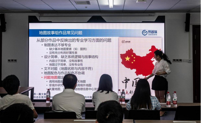 “长夏风清日,檐牙燕雀飞”,6月25日下午一点,应我院陈麒玉教授的邀请,易智瑞信息技术有限公司教育总监张聆女士一行四人来我院访问,在学院235室与空间信息与数字技术专业的本科学子进行了一场别开生面的交流活动。