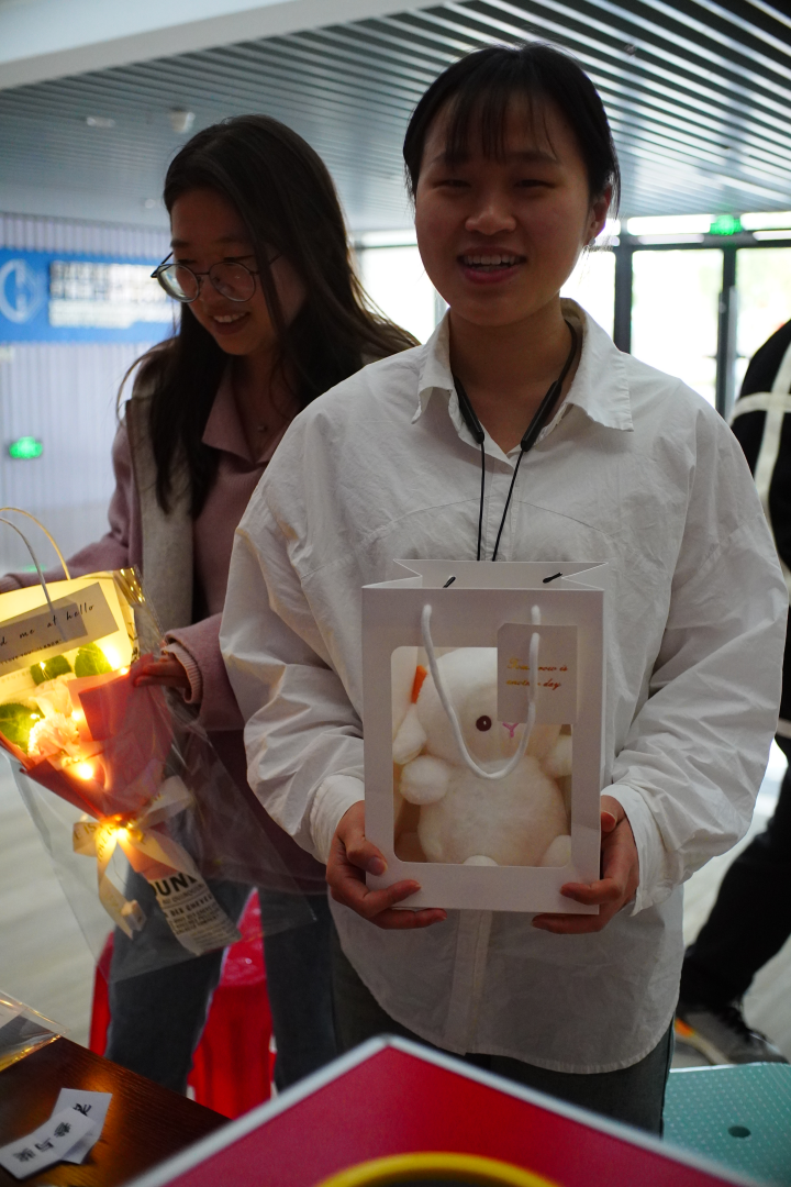 除了投壶比赛,现场还设有抽奖环节,为女生们送上节日的祝福和惊喜。