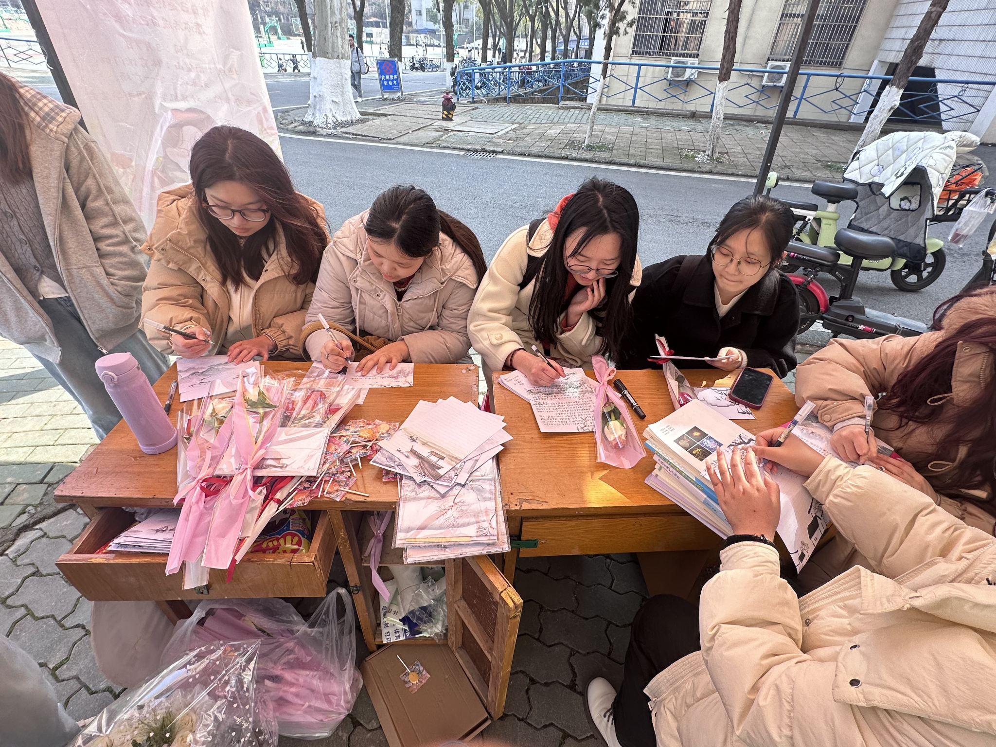 用信函传递感情,用文字书写青春。笔尖在纸上轻轻舞动,每一个字迹都充满了真诚和期待。心愿墙上渐渐填满了五彩斑斓的便签,展现着同学们内心的世界和对未来的向往。有的女生渴望在学业上取得突破,有的则期待着在生活中遇到心仪的人,还有的则简单地希望每天都过得开心快乐。这些心愿虽然各不相同,但都透露着她们对生活的热爱和对未来的无限期待。女生们可以在这里留下自己对其他女生的美好祝愿,也可以挑选他人留下的祝福语,带走一份暖意。