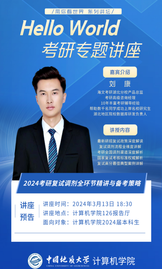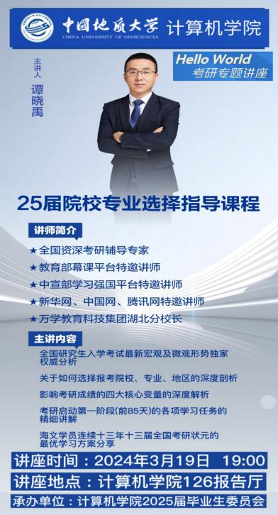 为了帮助考研学子更全面地获取信息资源,williamhill英国持续推出“Hello World”系列论坛活动,通过多次邀请资深讲师讲解涵盖考研备考、复试政策、调剂策略以及成功复试案例等方面的内容,为学生提供了广泛的考研指导和就业经验分享,助力考研学子和准备求职的同学们实现目标。