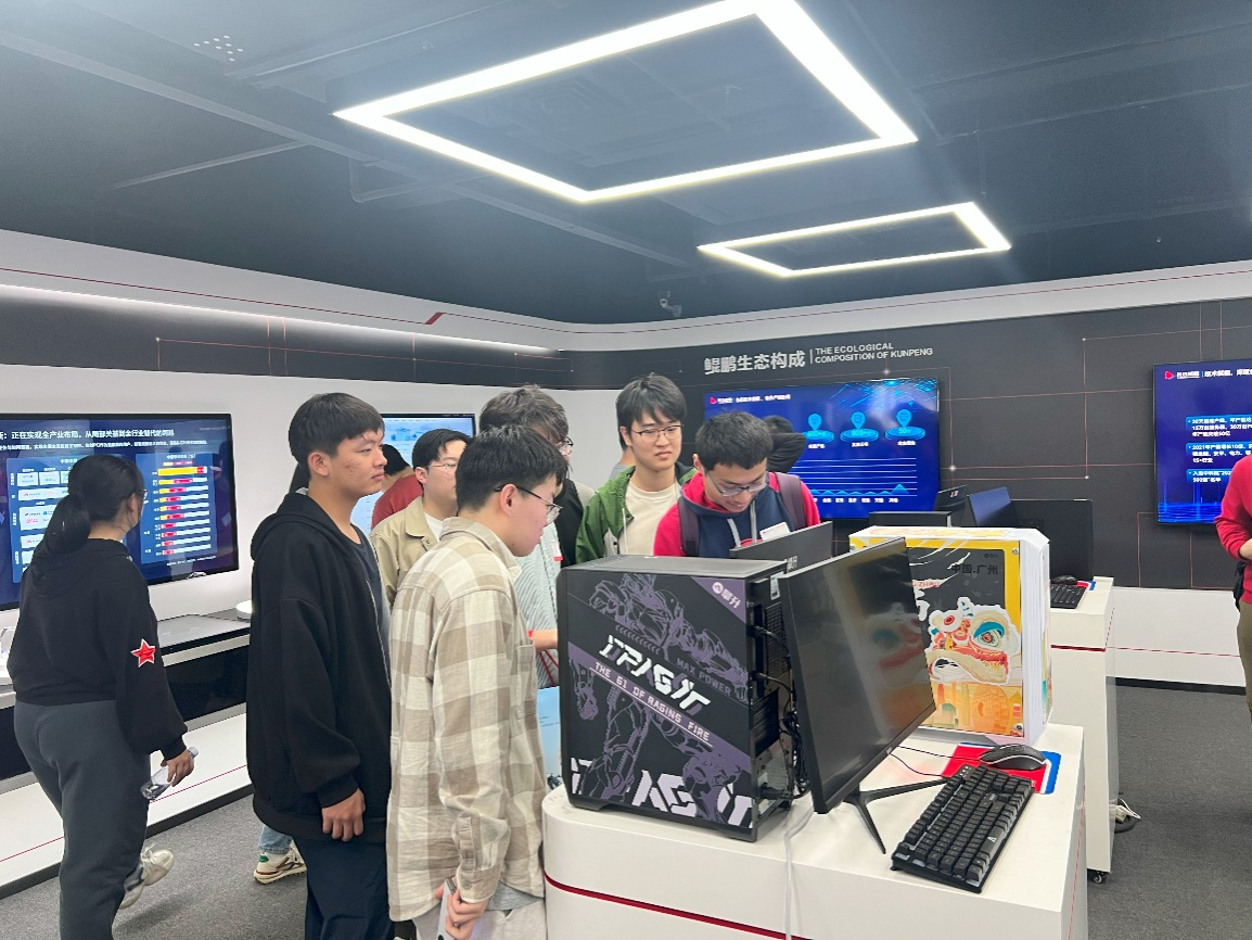 接着,师生们来到长江鲲鹏创新中心。在这里,通过体验人工智能技术在语音识别、图像识别等领域的应用,师生切身感受到基于鲲鹏处理器的计算机系统的强大性能以及人工智能技术的巨大潜力,并对人工智能技术的发展趋势和未来应用方向有了一定了解。