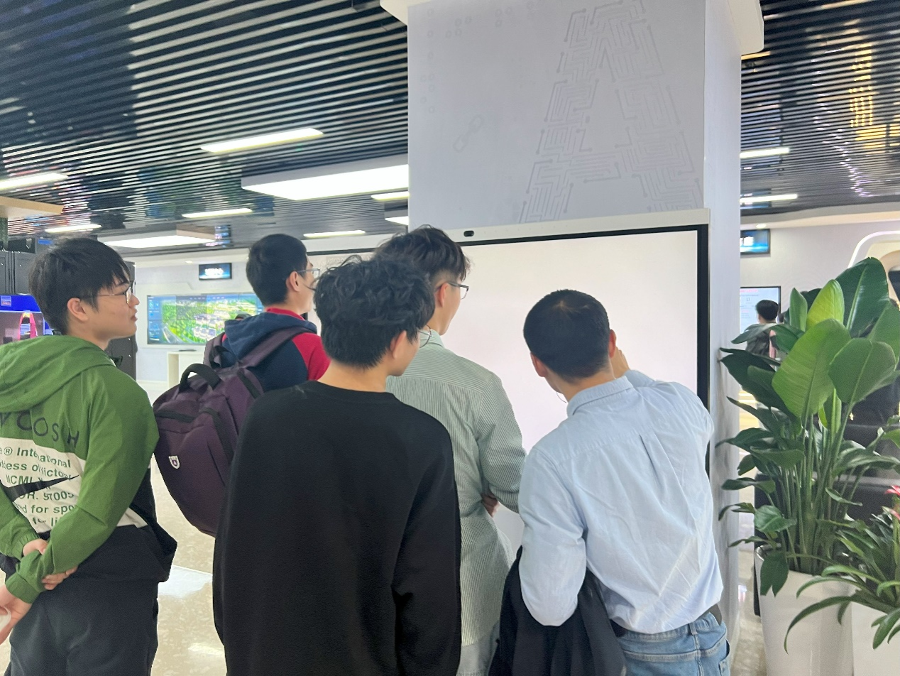 华为武汉研究所“智能基座”武长区域负责人余晶晶及相关工作人员全程引导,带领学院师生共享一场智慧科技与专业报国的盛宴。在华为武汉研究所展厅,师生们详细了解华为在5G、物联网等前沿技术上的研发进展,以及相关技术在智慧城市建设等领域的应用案例。每当提及关键技术细节或创新点时,师生纷纷点头表示赞同,部分同学更是与工作人员就专业问题进行互动。