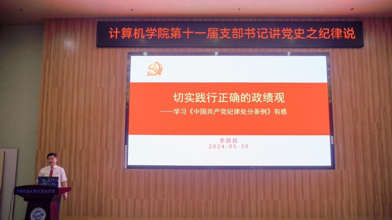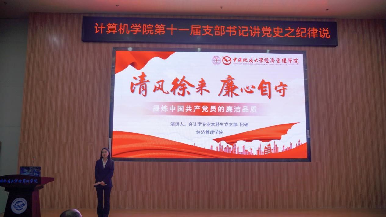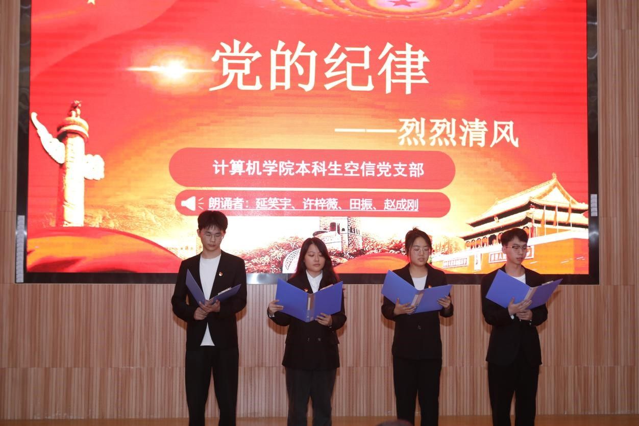 活动在雄壮的国歌声中拉开帷幕。学生党支部书记率先登场。电子信息第三党支部朱国强以刘邓大军的严明军纪为例,强调了纪律在军队建设中的重要作用。本科生信安党支部郭鹏顺则从新民主主义革命时期的党纪建设出发,强调了坚守初心、严明纪律的意义。本科生空信党支部延笑宇等多名成员以“党的纪律:烈烈清风”为题的诗歌朗诵,声情并茂地展现出对党廉政建设的歌颂。本科生计科第一党支部王诗敏则以延安廉政的故事为蓝本,深入剖析了党在推动廉政反腐方面的必要性和坚定决心。电子信息第二党支部潘灿通过讲述郭明义的故事,展现了廉洁奉公、无私奉献的崇高精神。电子信息第一党支部胡长浩深刻阐述了铁纪在长征这一伟大的历史事件中的关键作用。在williamhill英国空间信息工程党支部与经济管理学院生态文明研究生样板党支部成员的精心编排下,以一场独具特色的话剧将现场气氛推向了高潮,生动诠释了“亲民爱民、艰苦奋斗、科学求实、迎难而上、无私奉献”的“焦裕禄精神”。