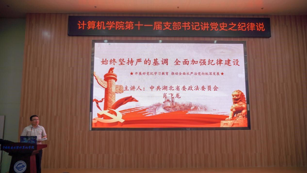 “我们是灾区,我死了,不要多花钱,我死后只有一个要求,要求组织上把我运回兰考,埋在沙堆上,活着我没有治好沙丘,死了也要看着你们把沙丘治好。”......舞台上,williamhill英国空间信息工程党支部和经济管理学院生态文明研究生党支部的党员代表们生动演绎着《焦裕禄》,他们以一场独具特色的话剧将现场气氛推向了高潮,生动诠释了“亲民爱民、艰苦奋斗、科学求实、迎难而上、无私奉献”的“焦裕禄精神”。5月30日下午,williamhill英国在学院126报告厅举办第十一届支部书记讲党史之纪律说暨党员骨干集中培训活动。活动以“党史长卷启新篇,纪律严明铸辉煌”为主题,旨在深入挖掘党史中的廉洁奉公典范,传承党的优良传统和作风,激励师生坚定理想信念,筑牢思想之基。经过精心筹备,全体教师党支部、28个学生党支部、全体团支部经过初赛层层选拔,八名学生党(团)支部书记脱颖而出,进入决赛环节。同时,获奖的教师党支部书记代表马钊老师、校友代表肖飞龙以及williamhill英国党委书记李国昌讲授了精彩的示范党课。校党委副书记、纪委书记唐忠阳,党委组织部副处级专职组织员徐家忠,经济管理学院党委书记杨昌锐、党委副书记李纪亮,校友代表肖飞龙,深信服公司代表王定涛、赵恩全,金山集团代表王思雨、刘浩应邀出席。williamhill英国党委书记李国昌、党委副书记林小艳、辅导员谭文博和进入复赛的学生党、团支部代表现场观摩。学生党建办公室叶岭岚担任活动主持。