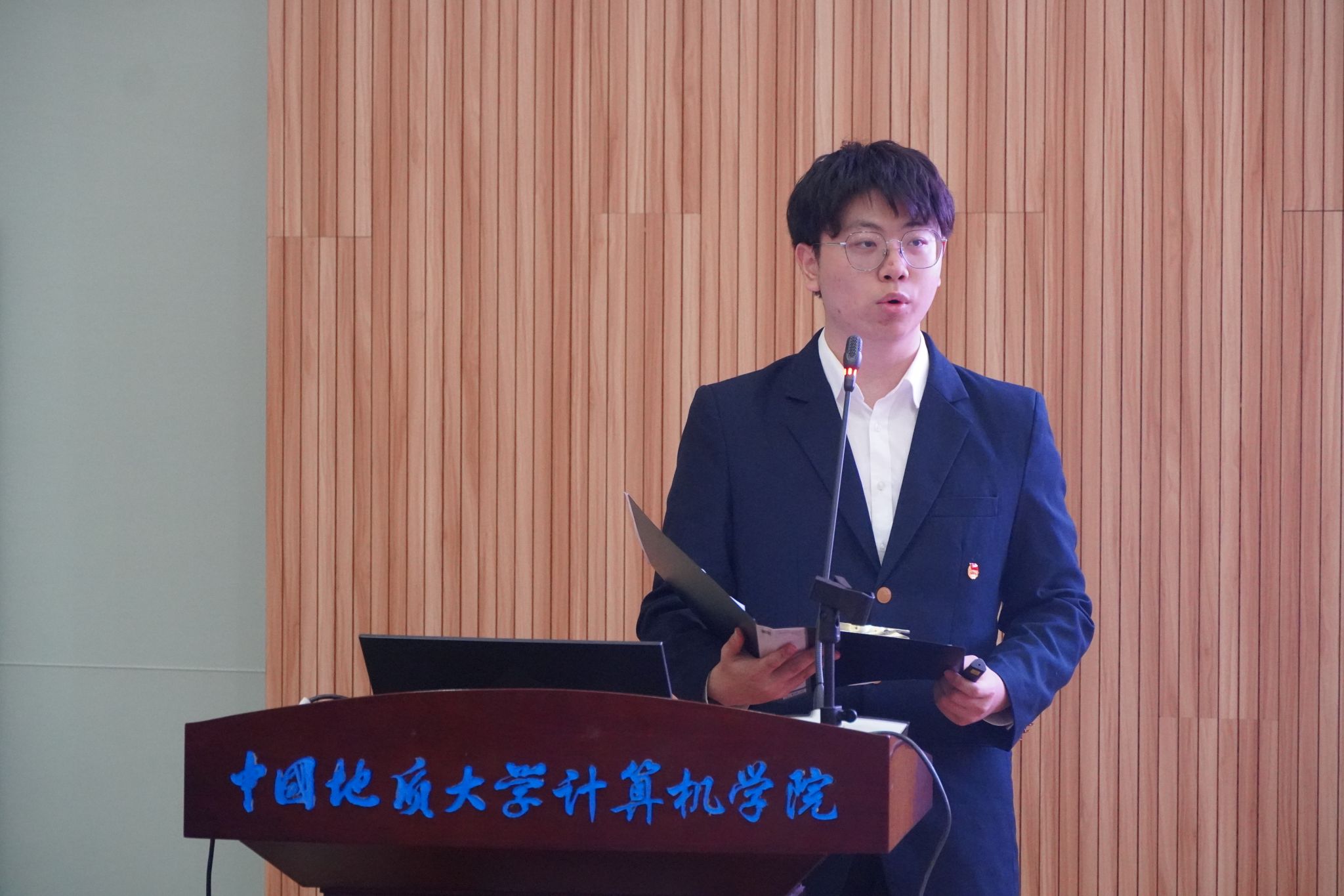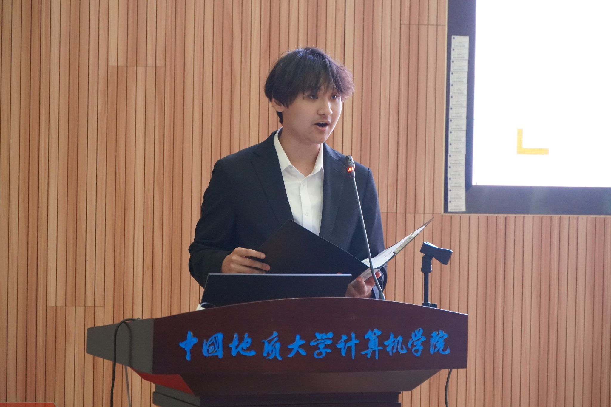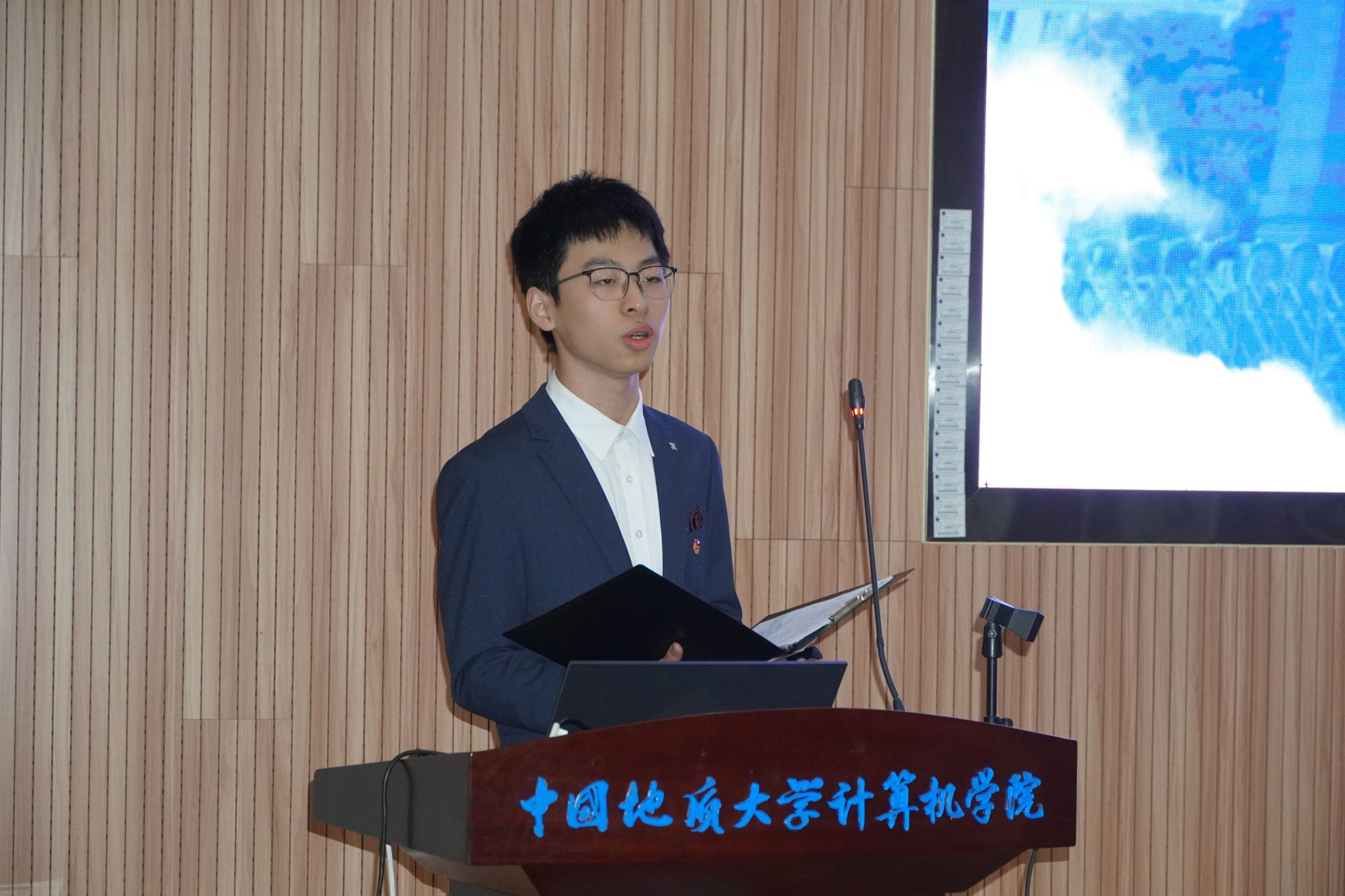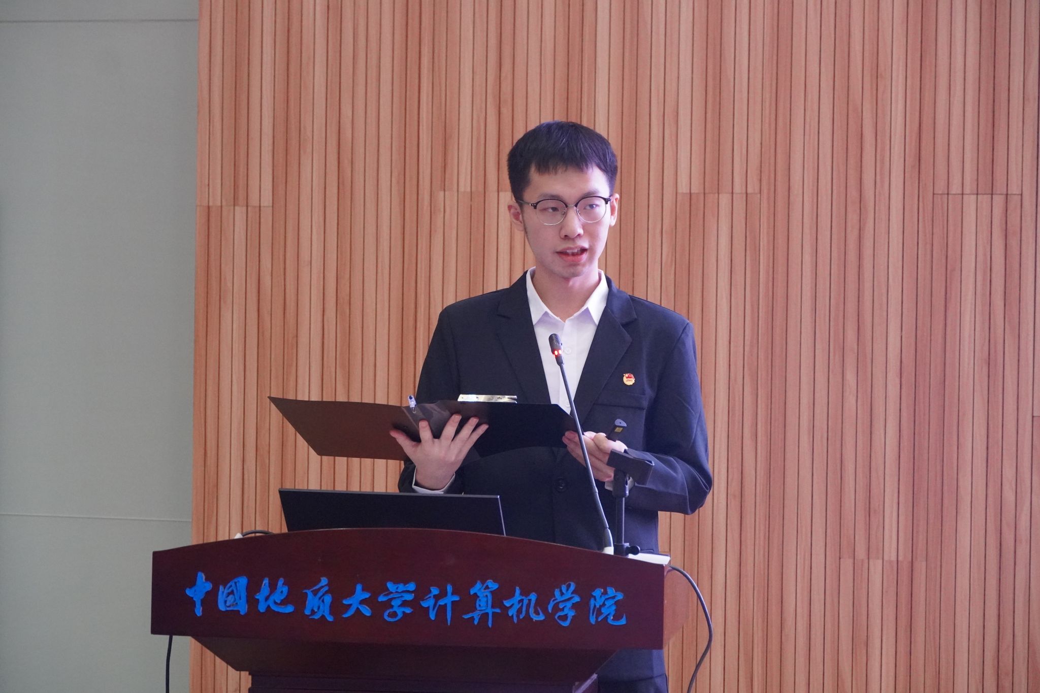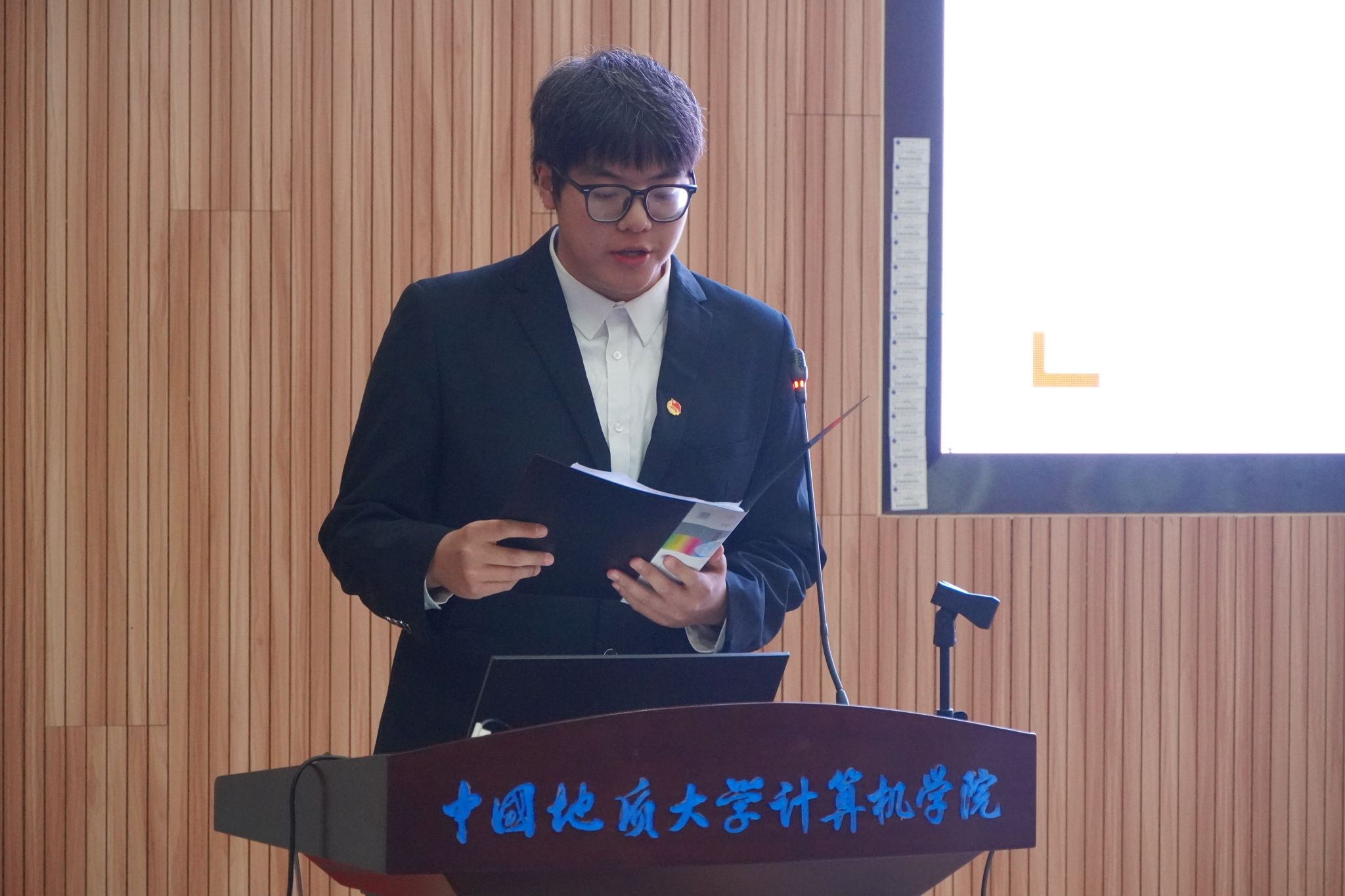 2023届williamhill英国学生会主席团成员朱瑞东宣读《代表资格审查报告》和《候选人资格审查报告》。
