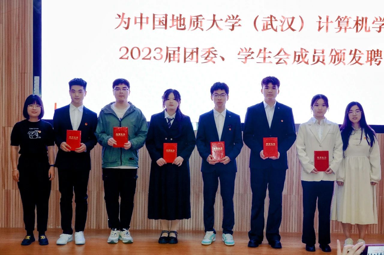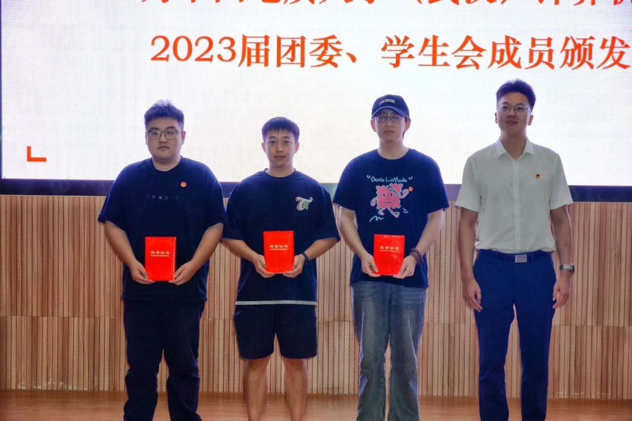 谭文博老师为学生会顾问颁发聘书,闫维蓉,刘佳丹老师为 2023 届学生会成员颁发聘书,王太茂,李欢欢老师为 2023 届团委成员颁发聘书, 林小艳老师为2023届团委学生会主席团成员颁发聘书。