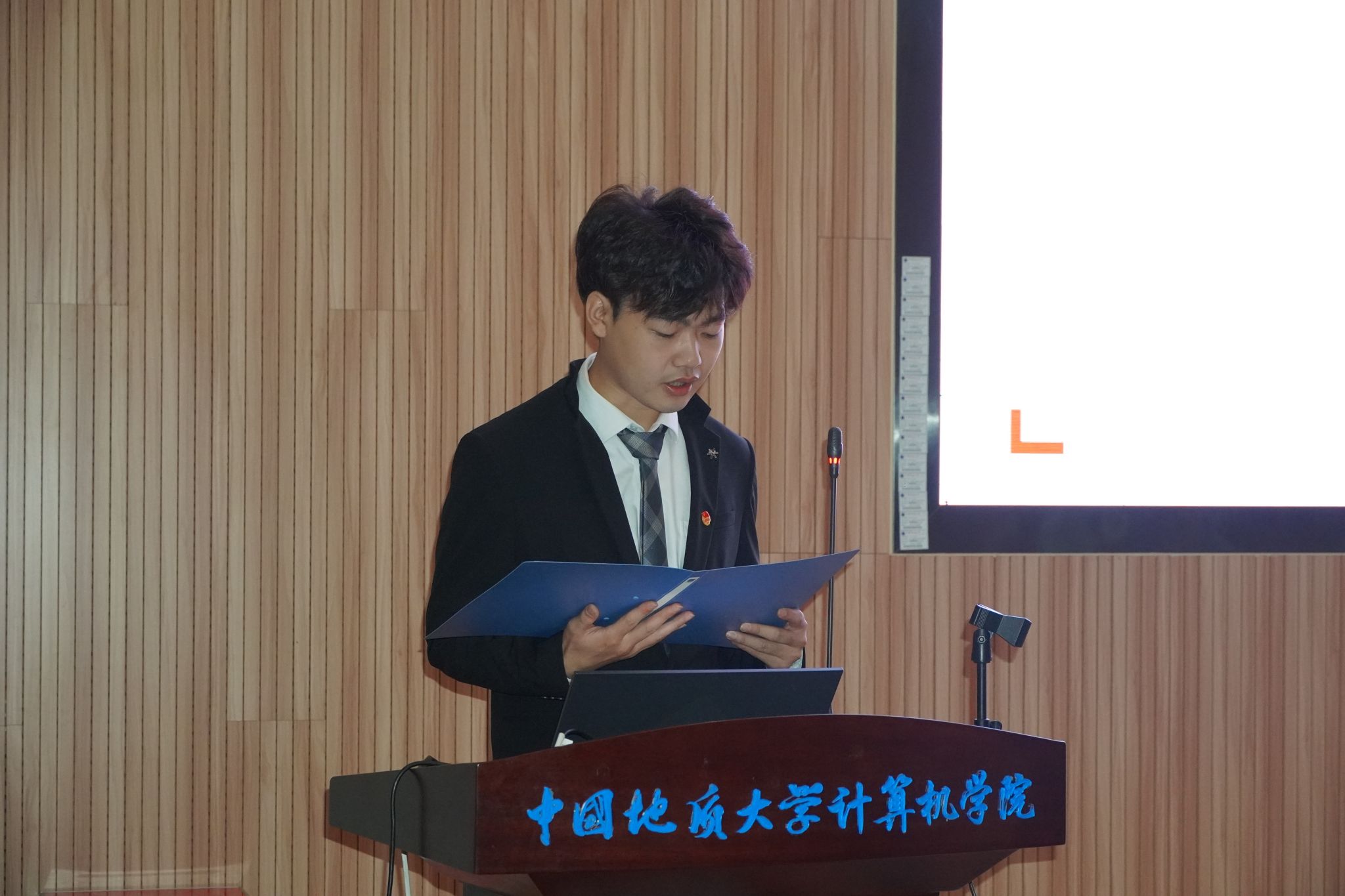 2023届计算机学生会主席团成员董帅宣读大会选举工作人员名单及选举办法。