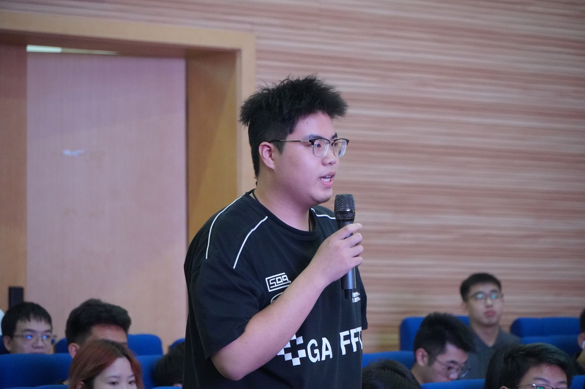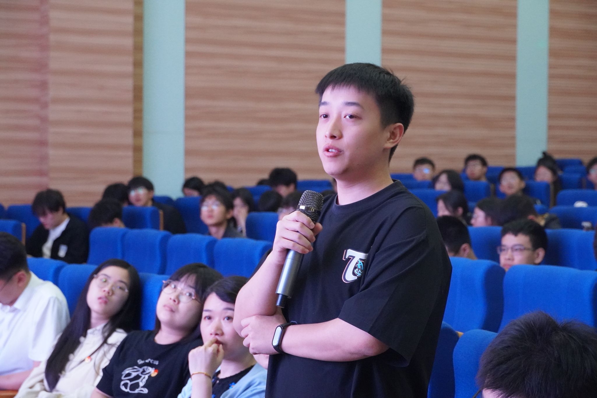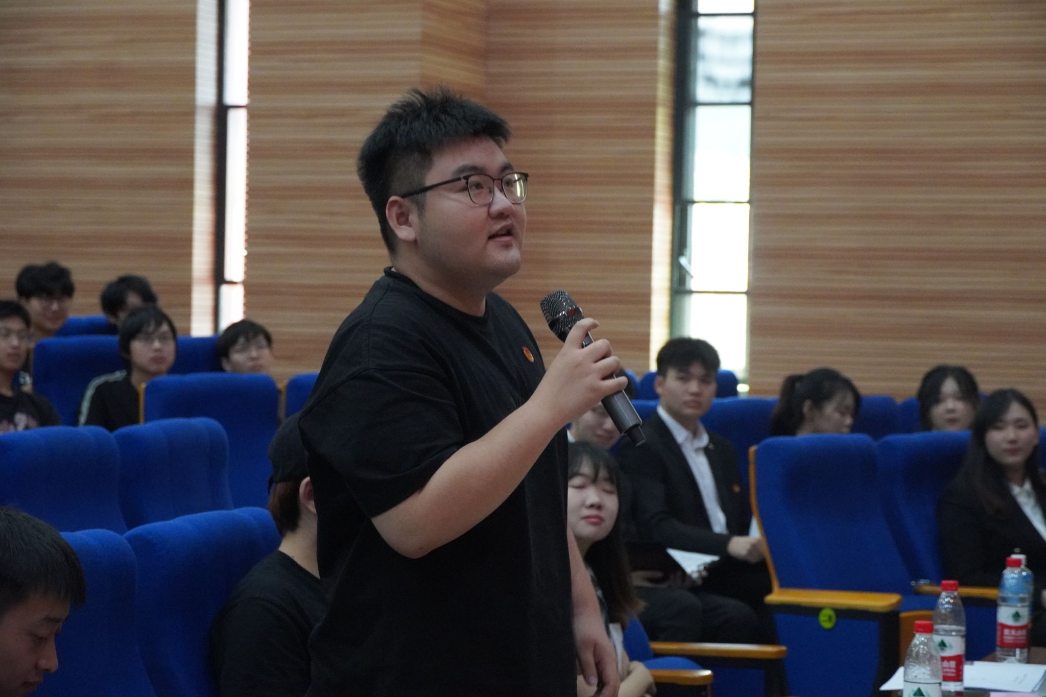 随后,进入预选候选人竞选答辩环节,七位候选人闫绪、李杭梦、王宇程、路畅、段子龙、叶辰勋、俞永幸分别进行答辩展示,学生代表们对候选人的个人情况、竞选岗位、工作设想等内容,进行互动交流、提问。