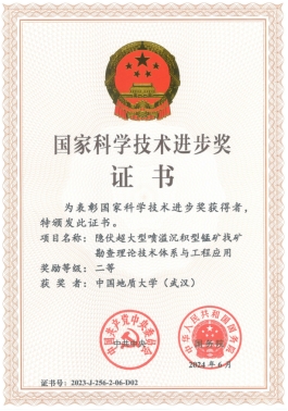 该项目由贵州省地质矿产勘查开发局周琦研究员牵头,我院吴冲龙教授领导的地质信息技术团队参与完成,其中张夏林教授(序5)、田宜平教授(序9)获得奖励证书,我校为第二完成单位、我院产学研基地武汉地大坤迪科技有限公司为第五完成单位。该项目针对我国隐伏锰矿找矿久攻不克的难题,发现了一种全新的锰矿床类型——喷溢沉积型锰矿床,并研发了隐伏喷溢沉积型锰矿找矿勘查关键技术体系,解决了该类型锰矿找矿预测与绿色高效勘查难题。我院团队基于QuantyView地质信息系统软件平台研发的数字勘查技术、三维地质建模技术、空间数据挖掘技术、大数据智能成矿预测技术等在项目研究中起到关键的技术支撑作用。通过工程应用,为黔东一大批新的大型隐伏锰矿床的发现和勘查,提供了数字化和信息化技术支持。