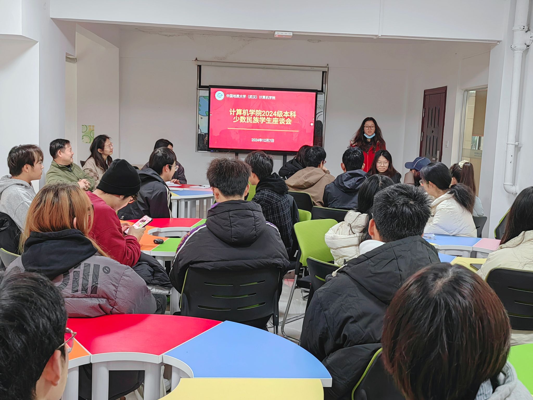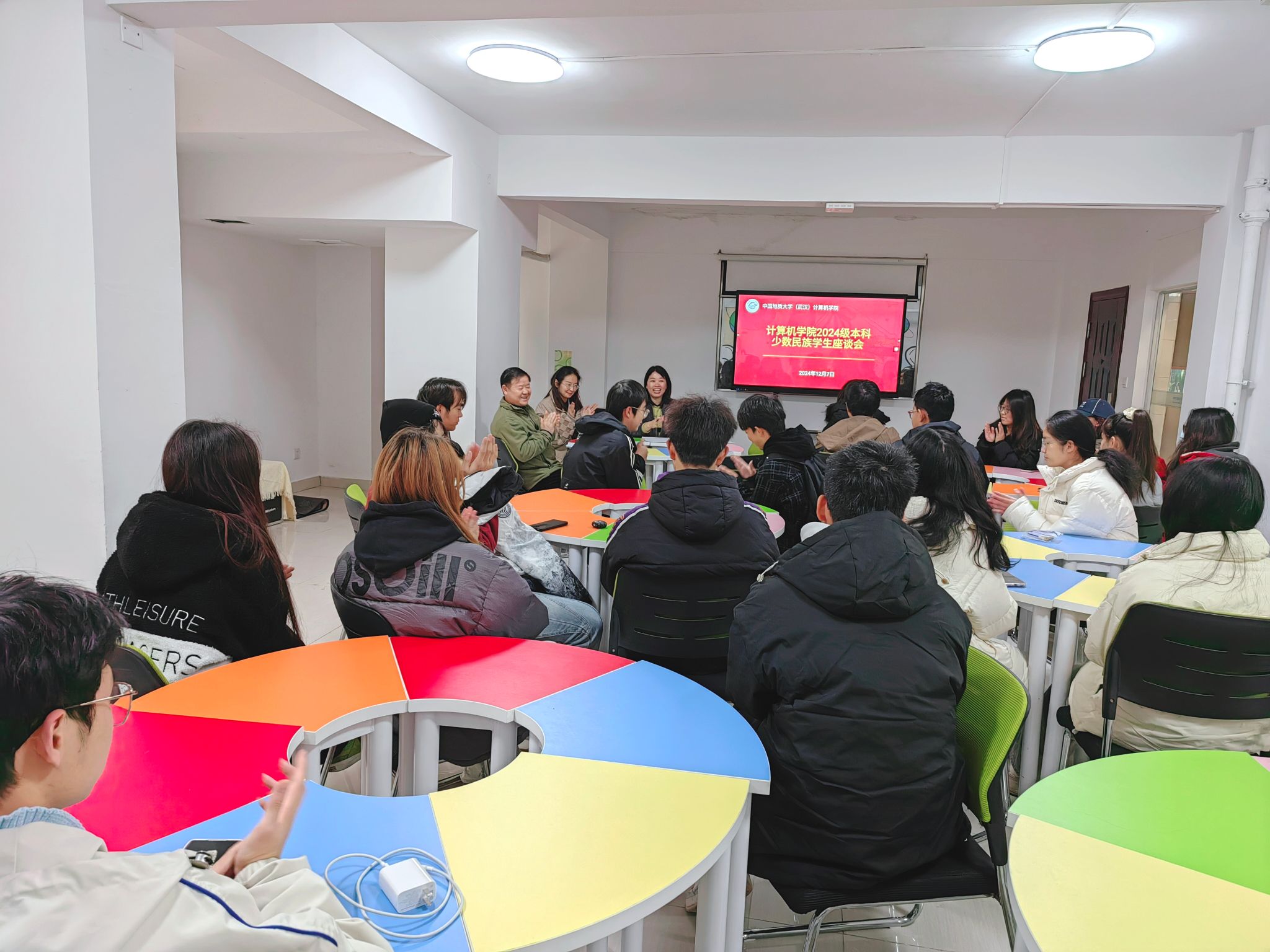 为深入贯彻落实习近平总书记关于教育的重要论述、关于加强和改进民族工作的重要思想,落实铸牢中华民族共同体意识教育工作推进会精神,12月7日上午,学院在南望山校区一站式学生服务中心分别召开少数民族学生座谈会和港澳台籍学生座谈会。学院党委书记李国昌、党委副书记林小艳、2024级辅导员刘佳丹、老生代表艾波塔波拉提别克以及30余名2024级本科少数民族学生和港澳台籍学生参会。林小艳主持会议。