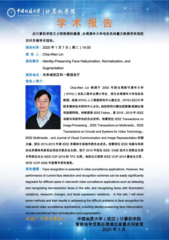 学术报告——台湾清华大学林嘉文教授:Identity-Preserving Face Hallucination, Normalization, and Augmentation