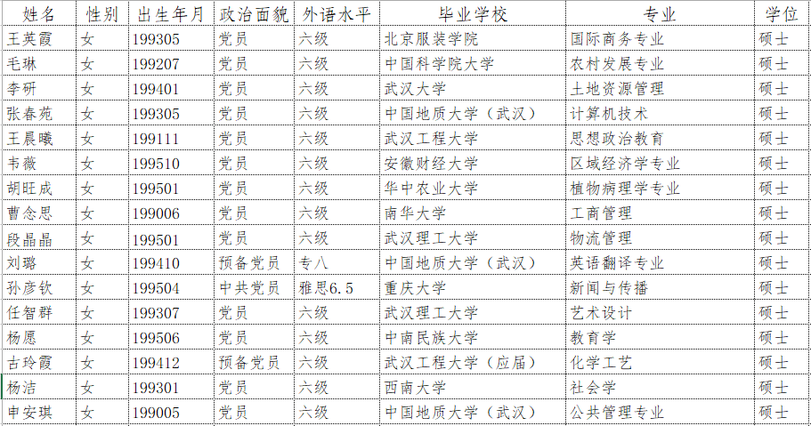 williamhill英国面向社会公开招聘工作人员已完成对报名人员资格审查,根据优先聘用条件(党员或预备党员+CET6或雅思6.5以上或专业4级以上+硕士)确定参加笔试人员名单如下(排名不分先后):