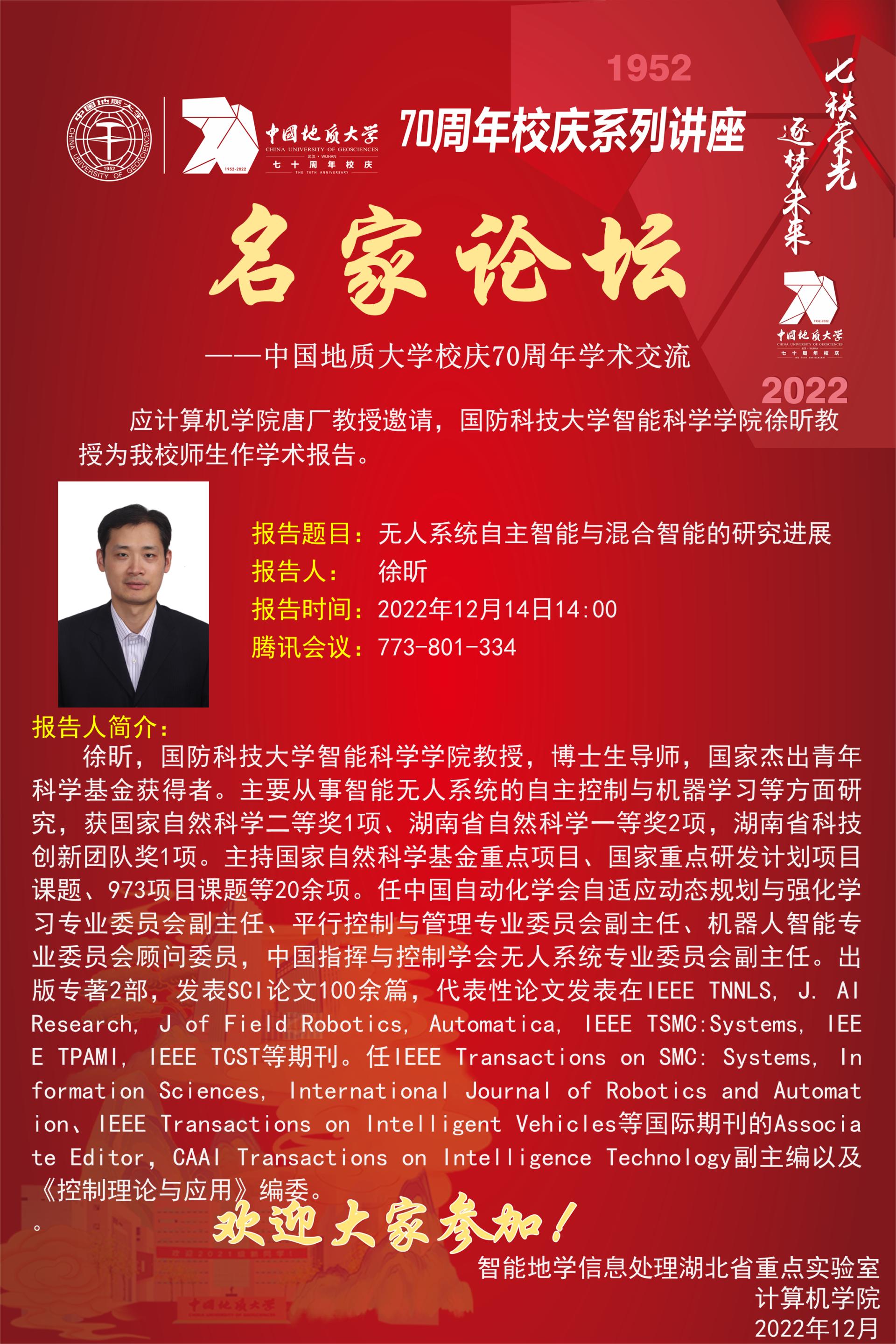 学术报告:国防科技大学智能科学学院徐昕教授——无人系统自主智能与混合智能的研究进展