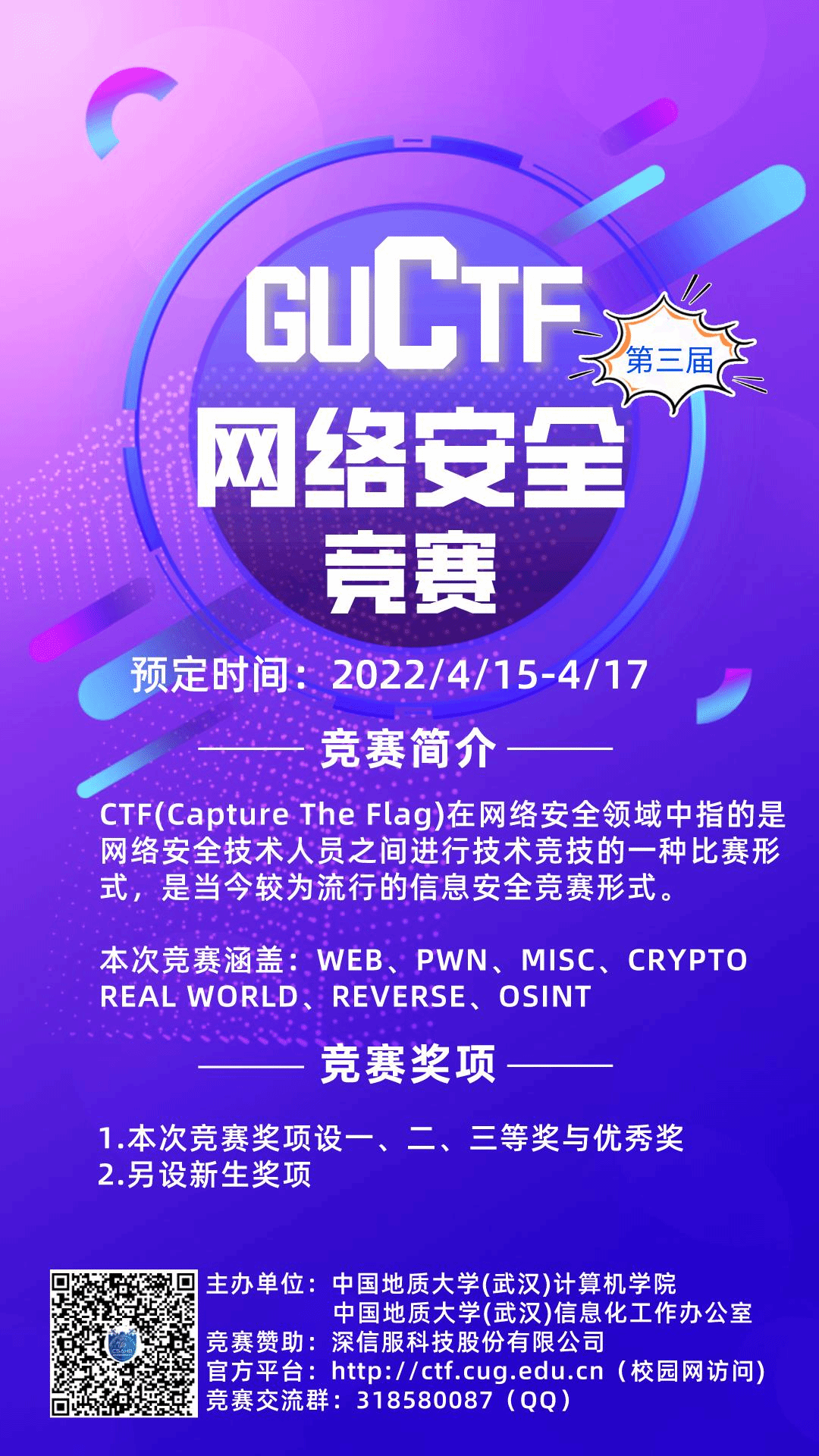 CTF竞赛不仅是培养网络安全人才的探索之径,也是吸纳全国优秀学生的必由之路,更是打造国内知名赛事的品牌之战。期待同学们的参与!