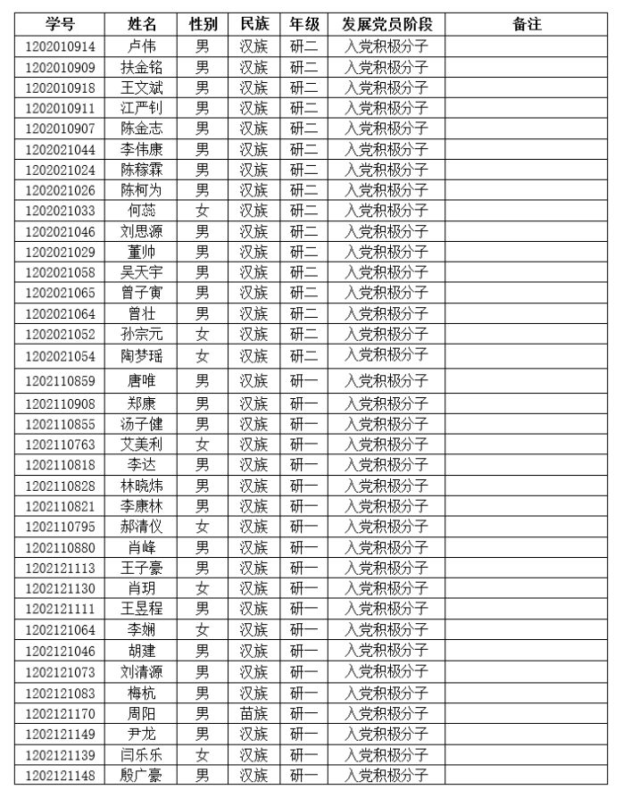 根据学校安排,2022年春季学期起,原地理与信息工程学院软件工程专业并入williamhill英国。为做好研究生党员发展工作,4月15日下午,williamhill英国学生党建办公室与地理与信息工程学院学生党建办公室进行对接,完成了中共预备党员和入党积极分子身份确立和材料接收工作,具体情况如下。确定2人党员身份,接收预备党员材料2份,具体名单如图一。接收入党积极分子材料36份,具体名单如图二。