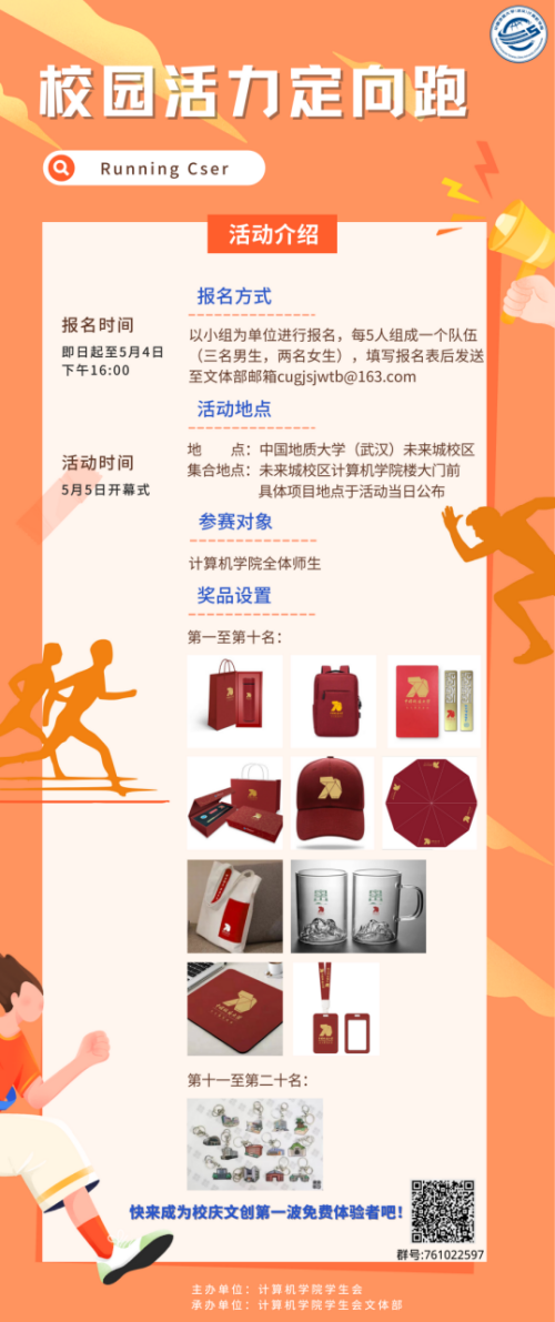 以团队为单位进行报名,每5人组成一个团队(三名男生,两名女生),填写报名表(见附件)后发送至文体部邮箱cugjsjwtb@163.com(队伍数量上限20支,先到先得)。