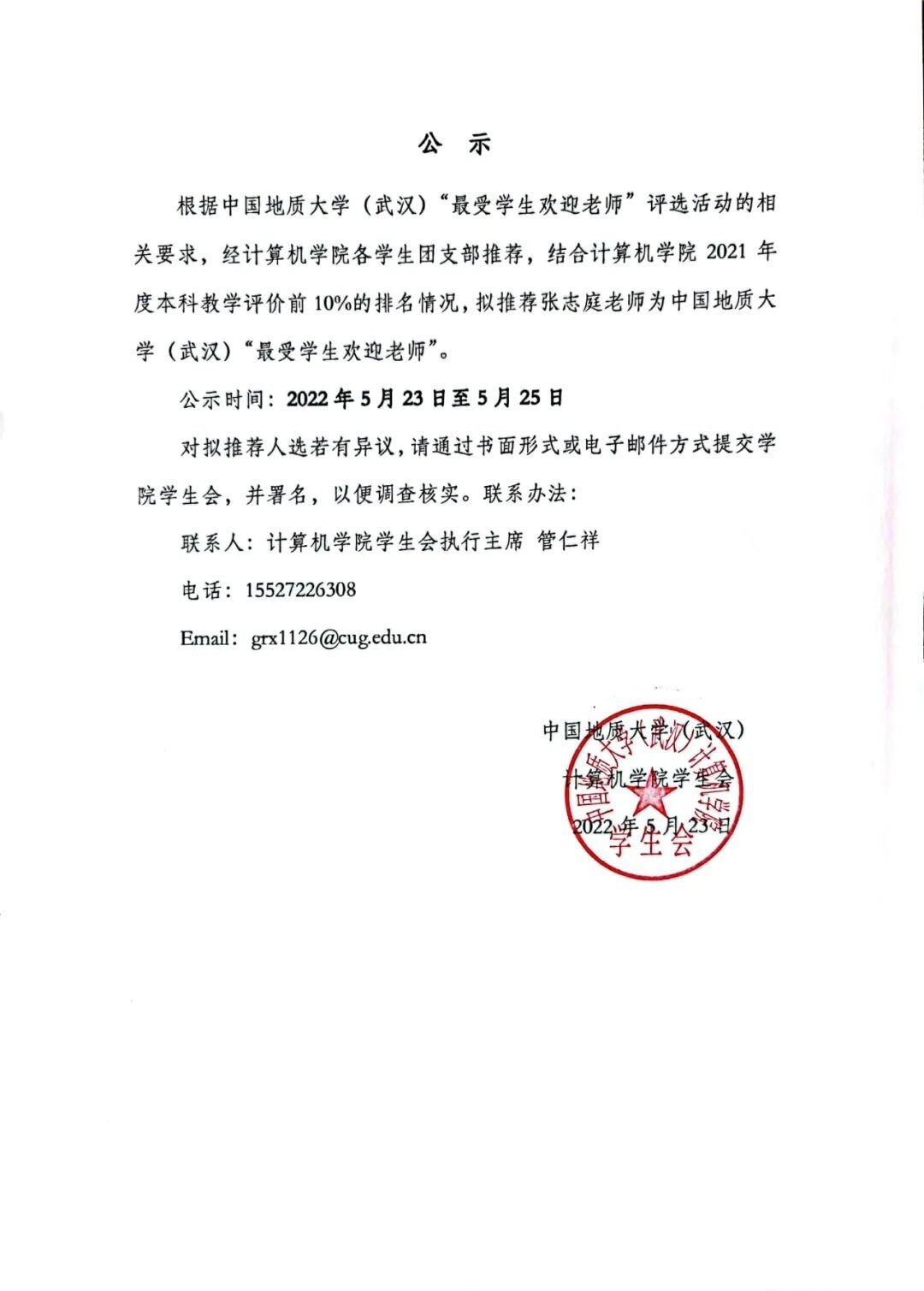 williamhill英国关于“最受学生欢迎老师”推荐人选的公示