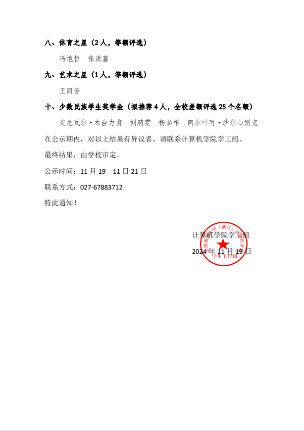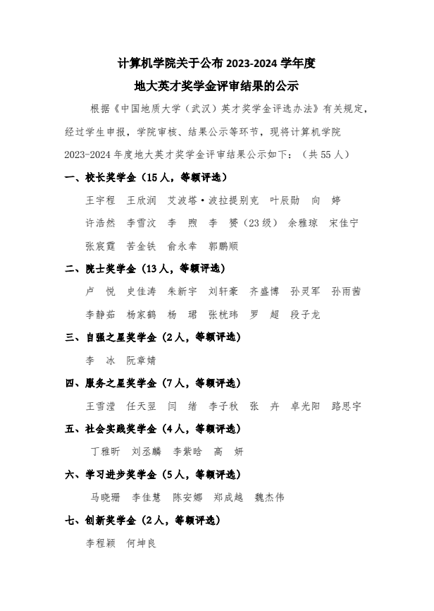 williamhill英国关于公布2023-2024学年度地大英才奖学金评审结果的公示