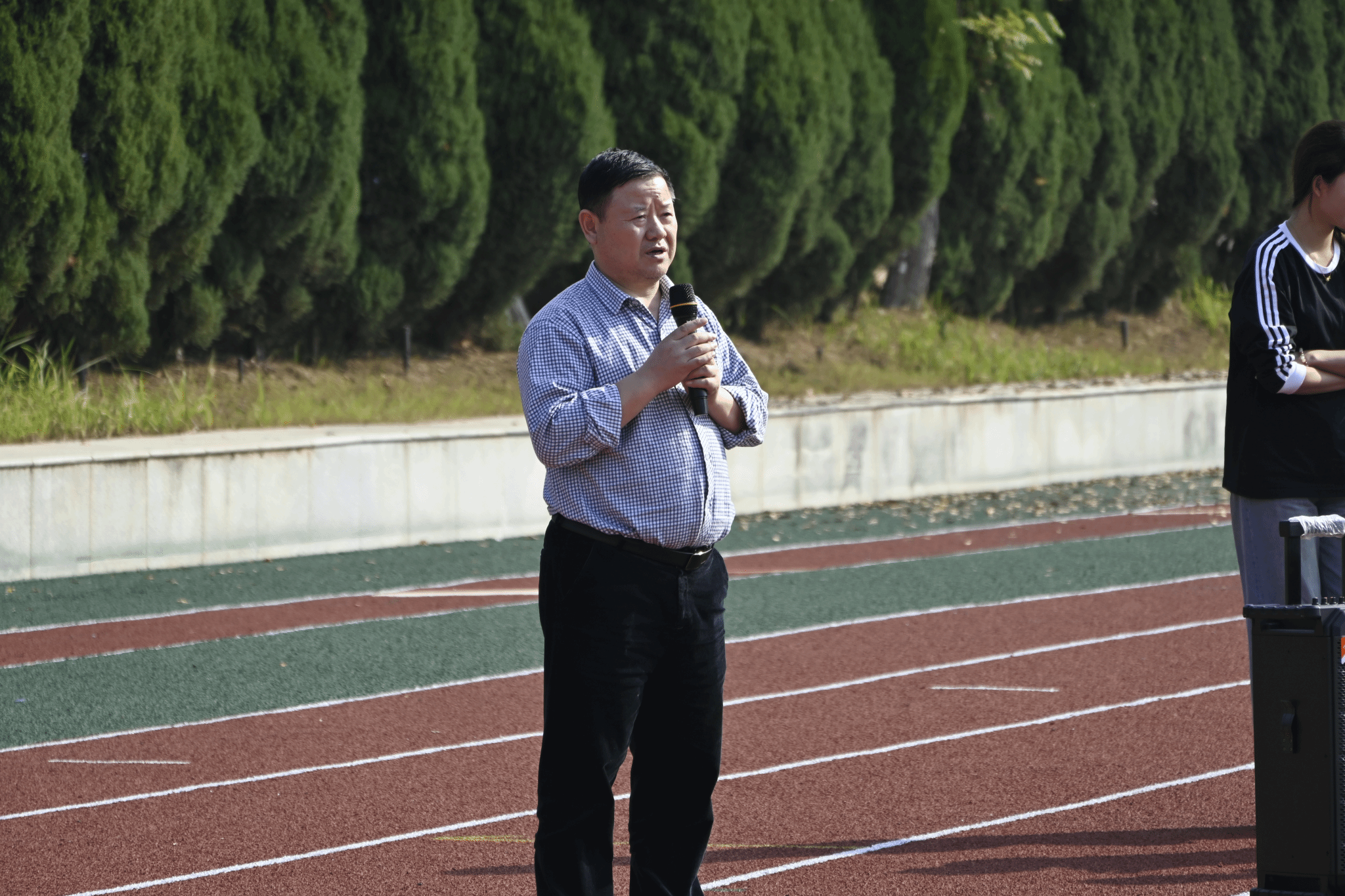 活动伊始,学院党委书记李国昌致辞。他代表学院对活动的顺利举办表示热烈祝贺,对积极参与的师生表示诚挚问候。李书记指出,学院历来高度重视研究生的全面发展与身心健康,趣味运动会不仅是一场运动竞技的盛会,更是师生沟通交流、凝聚共识的重要契机。他提到,近年来学院研究生规模不断扩大,活动参与度逐年攀升,充分体现了计科学子积极向上的精神风貌和强烈的集体荣誉感。他鼓励同学们在科研学习之余积极参与体育锻炼,以健康的体魄和充沛的精力迎接学习和生活中的挑战;也希望大家通过团队活动增进了解、加强协作。最后,他预祝本次趣味运动会圆满成功,祝愿全体师生在运动中收获快乐、收获友谊、收获成长。