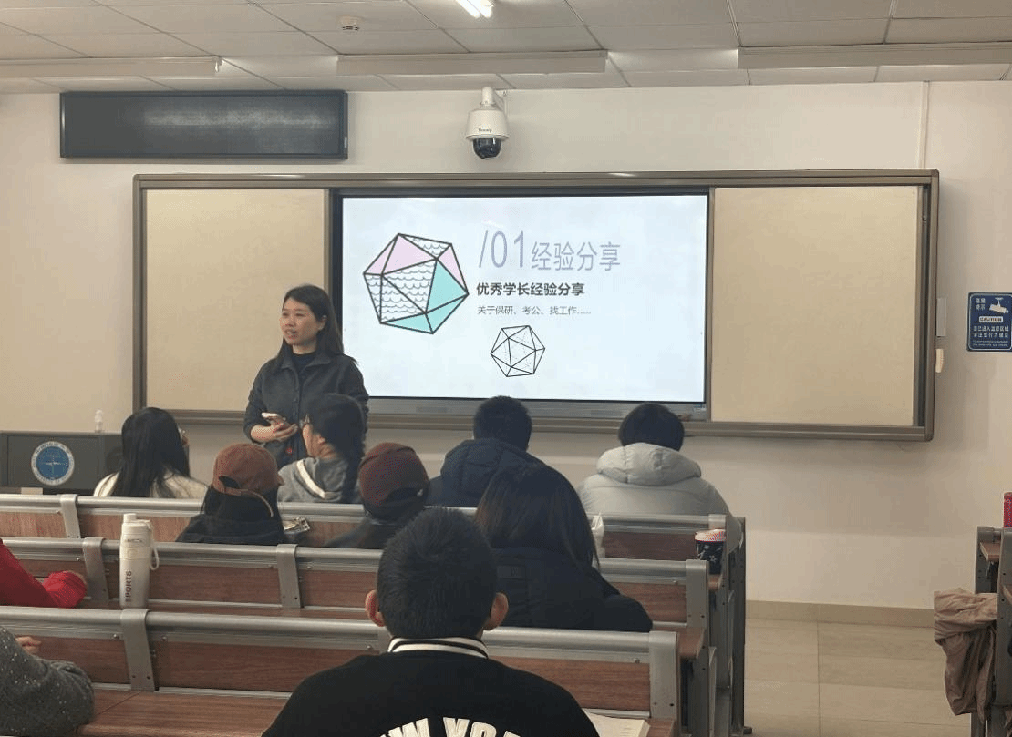 在分析班级学业状况的同时,武老师还对前面三位学长的经验分享进行了总结与补充。她指出,学长们的成长经历为同学们提供了宝贵的参考路径,无论是选择继续深造、报考公务员,还是未来走向就业岗位,都需要在大学阶段打好扎实的专业基础,同时不断提升自身综合能力。武老师鼓励同学们结合自身兴趣与发展方向,尽早思考未来规划,逐步明确人生目标。
