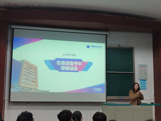 傅苑以“在奋进备考中厚植诚信”为主题,围绕三个关键词展开发言。一是“正视焦虑”,青年人的主题词是压力和希望,同学们首先要面对压力、认知压力,继而寻求办法解决压力,流水争先靠的是绵绵不绝的努力;二是“奋进备考”,临近期末,同学们要利用各种途径进行考前冲刺,主动联系任课老师答疑、向朋辈领英团成员请教、班级考前分享等都是期末复习的好方法;三是“厚植诚信”,同学们要深入落实“严在地大、严在计科”的精神,严格考风考纪,考试时要带好相关证件。最后,傅苑祝同学们在期末考试中都能取得优异的成绩。