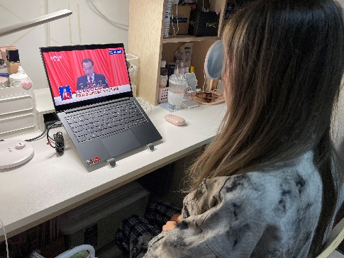 博士研究生党支部书记余倩倩谈到:此次报告围绕国计民生,回顾去年收获,设立了2022年的目标,介绍了今年重点工作。其中和往年比起来比较特别的部分是有关疫情防控的部分报告内容。最近疫情形势严峻,学校不定期举行的核酸检测,让我切实感受到国家为控制新冠疫情所作出的努力,期待在国家和人民的共同努力下,早日战胜疫情,恢复正常的生产生活。