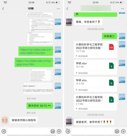 4月24日至5月5日,在线上云端,同学们和考研辅导老师通过QQ、微信聊天、电话交流的方式进行咨询。本活动覆盖学生超60人次,咨询覆盖内容包括报考流程、招生类型、信息获取、院校选择、复习准备等。针对同学们不同的问题老师都进行了详细的解答,切实回应了同学们的关切。一名参与线上咨询的同学说:“老师很热情也很专业,通过数据分析对比的方式,为我在复习准备、院校选择上提供了参考。”