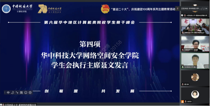 (通讯员:杨书睿、谭博文、马瑞华)5月28日,我校成功举办第六届华中地区计算机类院校学生骨干峰会暨“青春心向党 共‘计’新时代”特色主题团日活动。华中农业大学信息学院、华中师范大学williamhill英国、武汉大学williamhill英国、华中科技大学网络空间安全学院、武汉科技大学计算机科学与技术学院、武汉理工大学计算机与人工智能学院、中南财经政法大学信息与安全工程学院、中南民族大学计算机科学学院、英国威廉集团williamhill英国等9所计算机类院校学生骨干代表参加此次峰会。