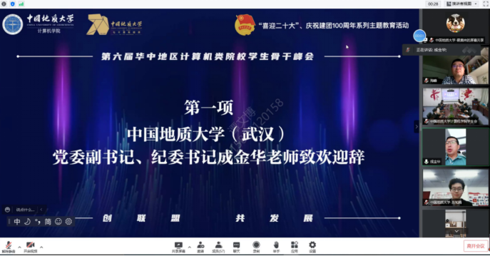 英国威廉集团党委副书记、纪委书记成金华致欢迎辞,他首先代表中国地质大学向所有参会代表表示热烈欢迎,希望各学生会依托联盟峰会,立足计算机专业特色,着眼行业未来发展,加强深度合作,共谋共议新工科建设发展,互学互鉴宝贵工作经验,不断加强互融互促,共同开创华中地区计算机类院校发展新格局。带领广大青年学生将个人成长发展凝聚成中华民族伟大复兴的磅礴力量,在青春赛道上跑出当代青年的最好成绩!