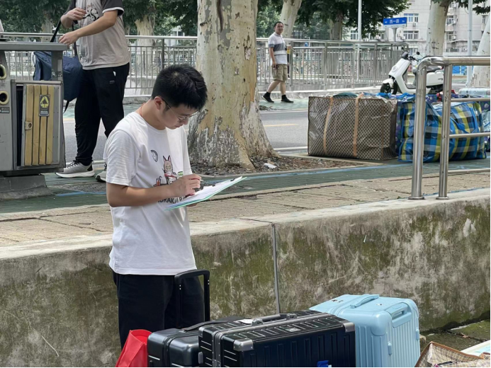 为保证大家的行李都能顺利抵达未来城,2021级每个班都分别安排了行李清点员,在装车前后做好行李清点工作。