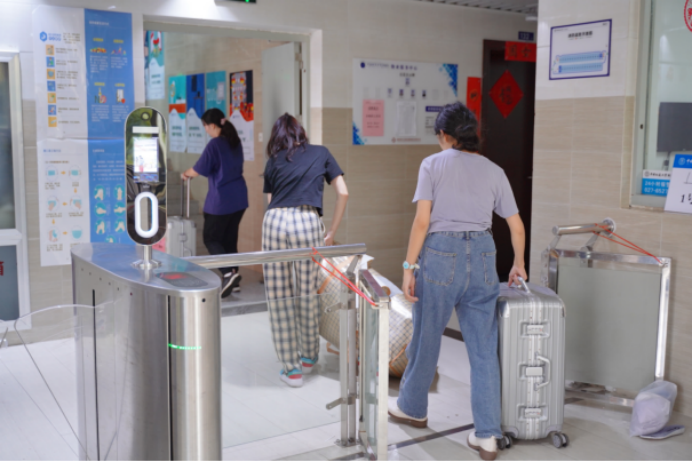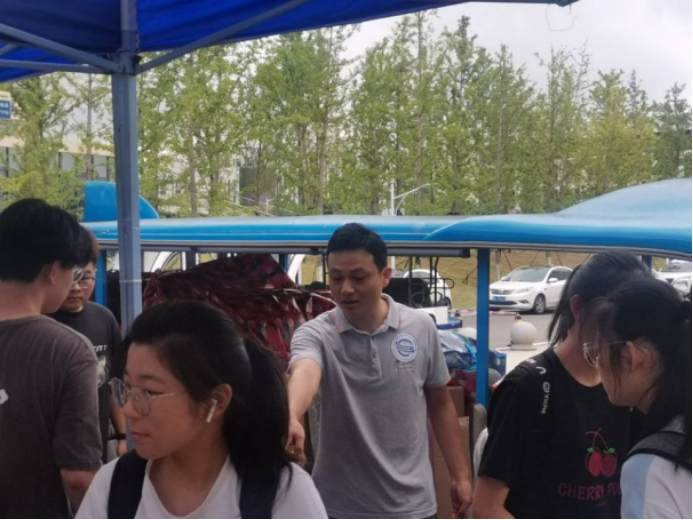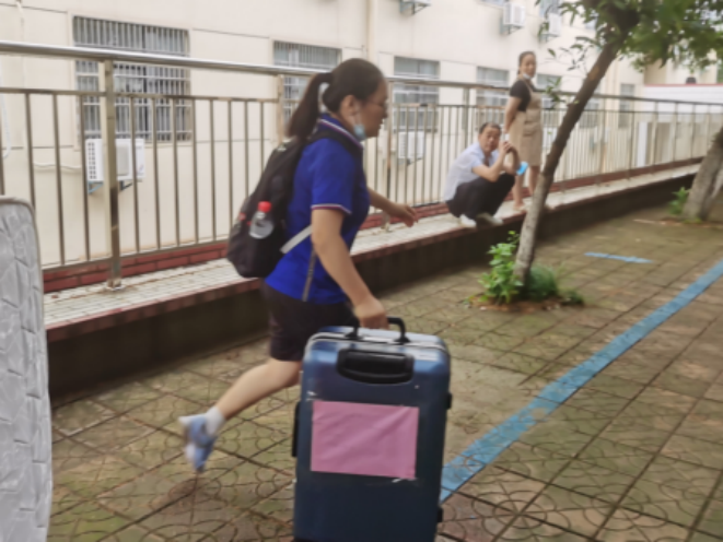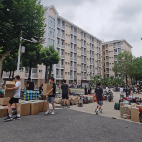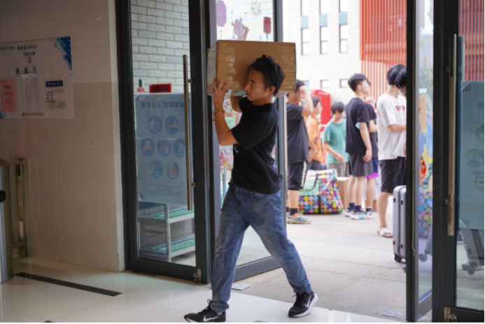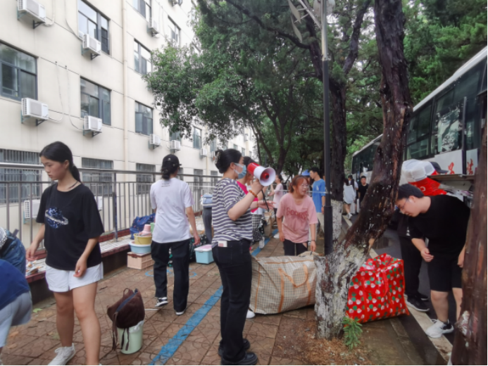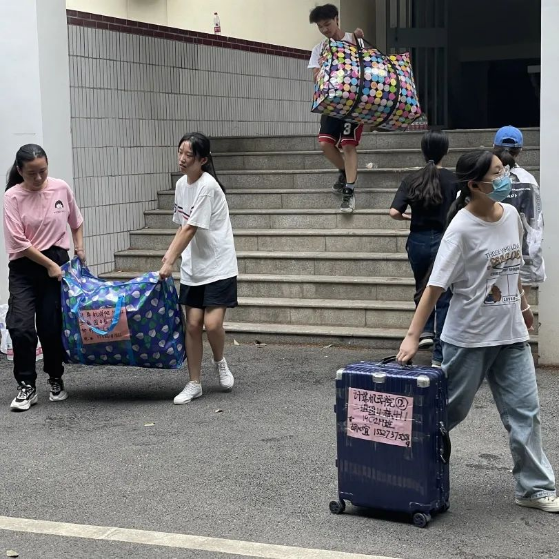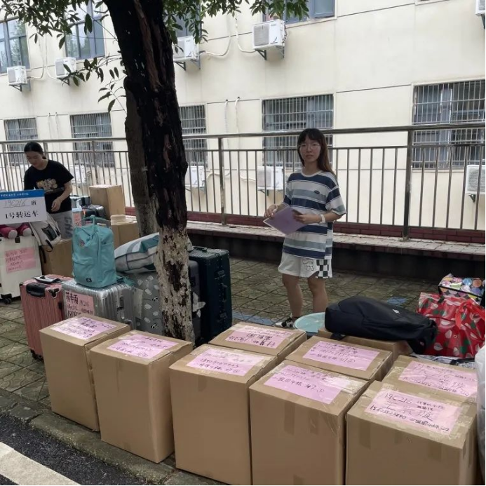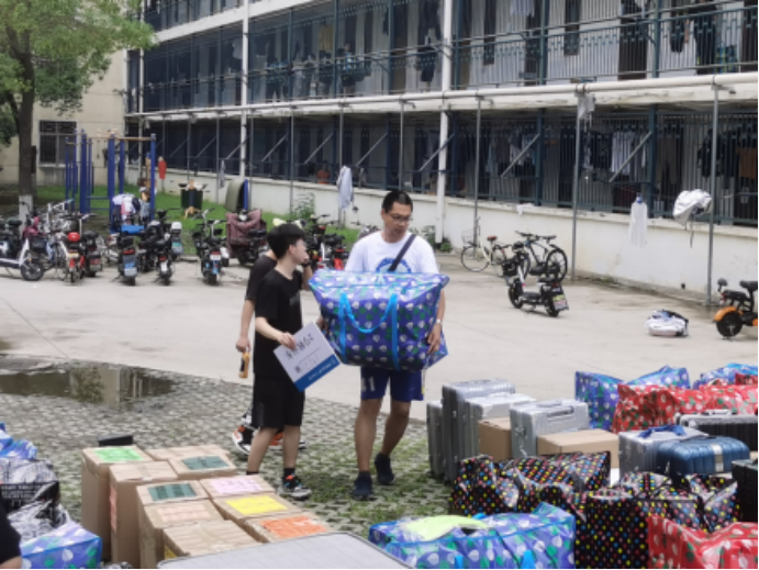 班主任、学工组的老师们全程守在搬运现场,维持秩序,提供帮助。