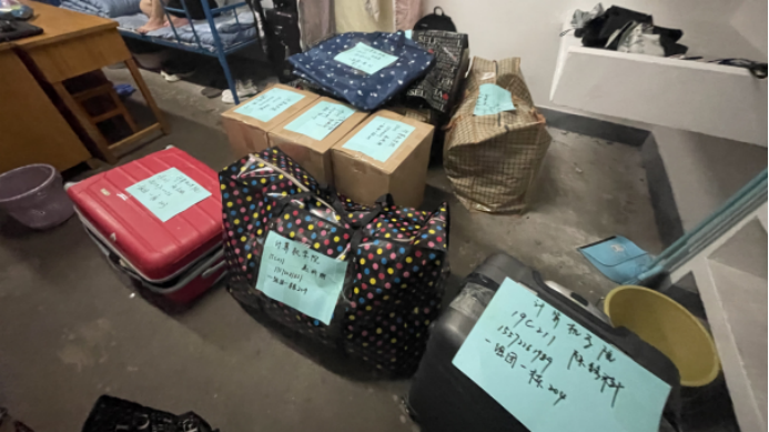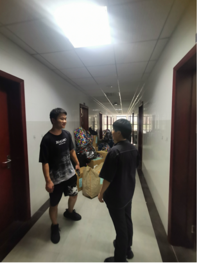 搬迁前一晚,同学们使用学院派发的物资,认真打包好行李,在各自的行李上贴好标签,以免丢失。学院还提前准备了消暑药品、晕车药、饮用水供学生自取。