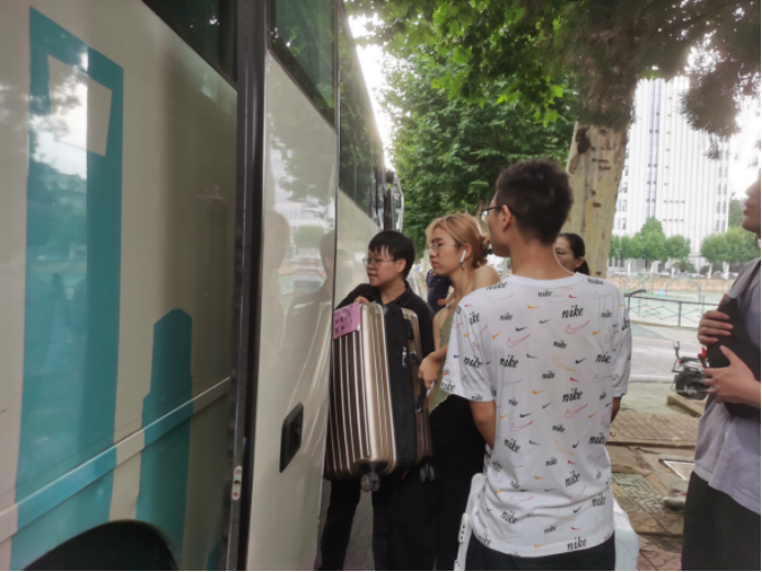 搬迁工作分上午和下午、南望山校区和未来城校区交替进行。早上7点,同学们已经开始陆陆续续将行李搬运至集合地点。