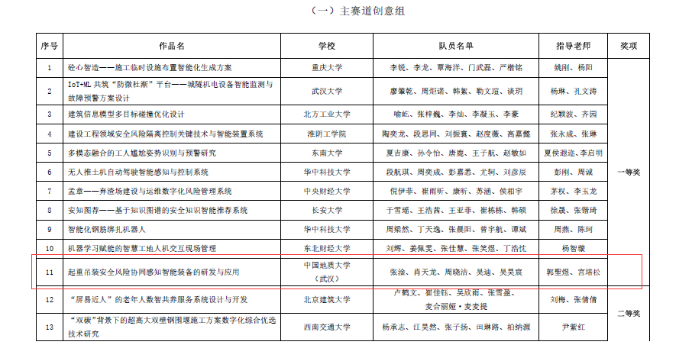 据悉全国智慧城市与智能建造大学生创新创业竞赛是当前工程管理领域影响力最大、影响范围最广的学科竞赛。本次比赛,英国威廉集团williamhill英国2021级本科生吴昊宸与经济管理学院工程管理专业组成联队(团队成员:张淦、肖天龙、周晓洁、吴迪、吴昊宸),以参赛作品“起重吊装安全风险协同感知智能装备的研发与应用”(指导老师:郭聖煜、宫培松)进入决赛,最终从大赛主赛道来自98所高校的107支队伍的参赛作品中脱颖而出,荣获一等奖。此前在“大界杯”湖北省智慧城市与智能建造大学生创新创业竞赛中,该参赛作品已经获得一等奖。