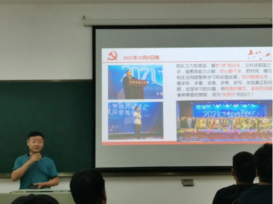 李书记分享了近几年空间信息与数字技术专业毕业生去向的翔实数据,并以“奋斗是青春最靓丽的底色,行动是青年最有效的磨砺”为指引,将保研、考研、就业的优秀学生和落后学生进行对比,剖析造成差距的原因,并播放毕业学长代表录制的视频,有本科毕业在华为工作的高一鸣以及在我校完成本硕博学习毕业后在中国矿业大学任教的左明成。学长们现身说法,勉励同学们志存高远,脚踏实地,坚定前进信心,不断提升自己,为青春绽放绚丽之花朵,为民族堪当复兴之重任。李国昌对同学们提出三点希望:一是赛程过半,认真思考,立真目标;二是撸起袖子,争分夺秒,下真功夫;三是无论西东,爱岗敬业,写真论文。