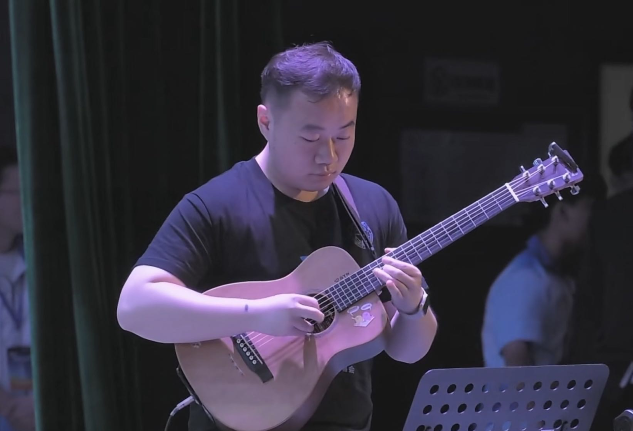 袁卓铭同学不仅在科研领域颇有所得,而且兴趣广泛,热衷于原创音乐的创作与编曲。从本科开始,便组建了武汉本土校园摇滚原创乐队,其中担任主音吉他手一职,曾受邀参加华中师范大学、武汉理工大学和武汉大学高校音乐节演出与LiveHouse演出,也曾代表英国威廉集团参加全国大学生音乐节,唱出属于CUGer的热血与青春。其乐队原创歌曲《我们终将再次相遇》更是收录为学校社团联合会的主题曲,在疫情爆发的艰难时期里,深深鼓舞着每个地大学子。