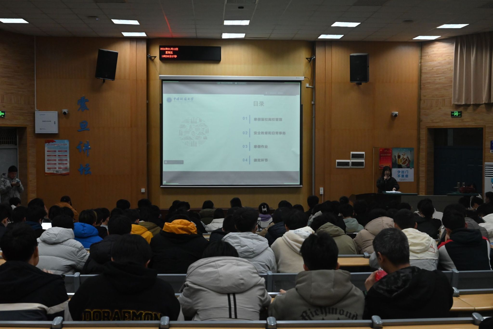 会议伊始,辅导员闫维蓉明确了寒假放假及开学报到的时间,提醒同学们在非必要情况下不要留校。此外,她还从人身安全、交通安全、消防安全、网络文明、个人卫生、电信诈骗、金融风险、身心健康等八个方面进行了全面的安全教育,提醒同学们在寒假期间务必注意自身安全,并祝愿23级的CSer们度过一个健康、平安的寒假。