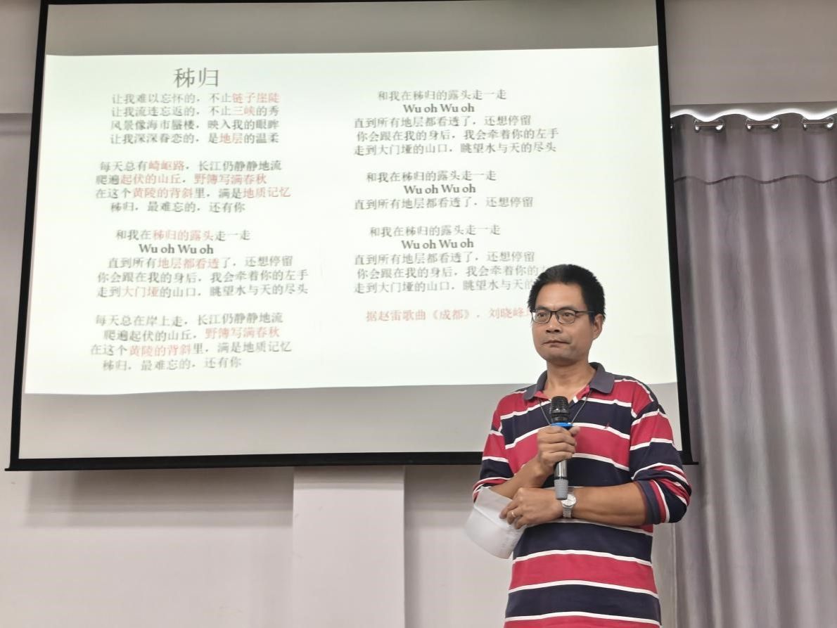 学生代表罗鑫也走上台分享感悟,他动情地提到这一路的过程,每一步成长都离不开导师的指导与同伴的互助;秭归的山野教会我们的不仅是专业技能,更是“脚下有痕、心中有尺”的地质人精神。随后,张志庭老师代表回顾了整个实习历程:从初识地质工具的懵懂,到熟练掌握剖面实测、填图绘图的技能;从冒雨穿行雾河山林的坚持,到用无人机科技赋能地质测量的突破,每一步都是成长的印记。