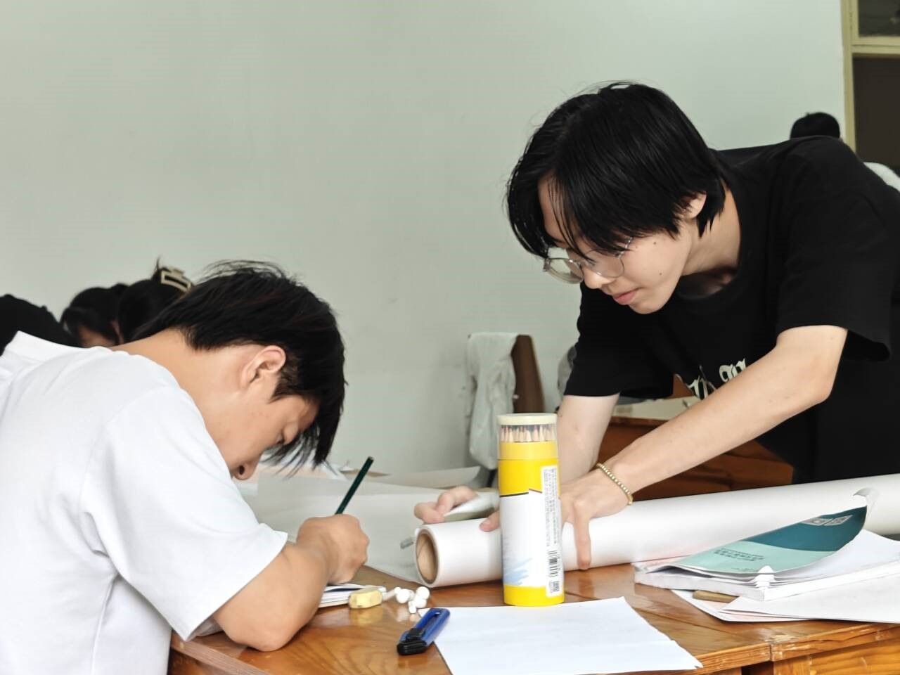 9月23日,室内工作进入攻坚阶段。经过前一天的绘制,大部分小组的地质图已初具雏形,但同学们并未松懈,而是开启“精细化打磨”模式。