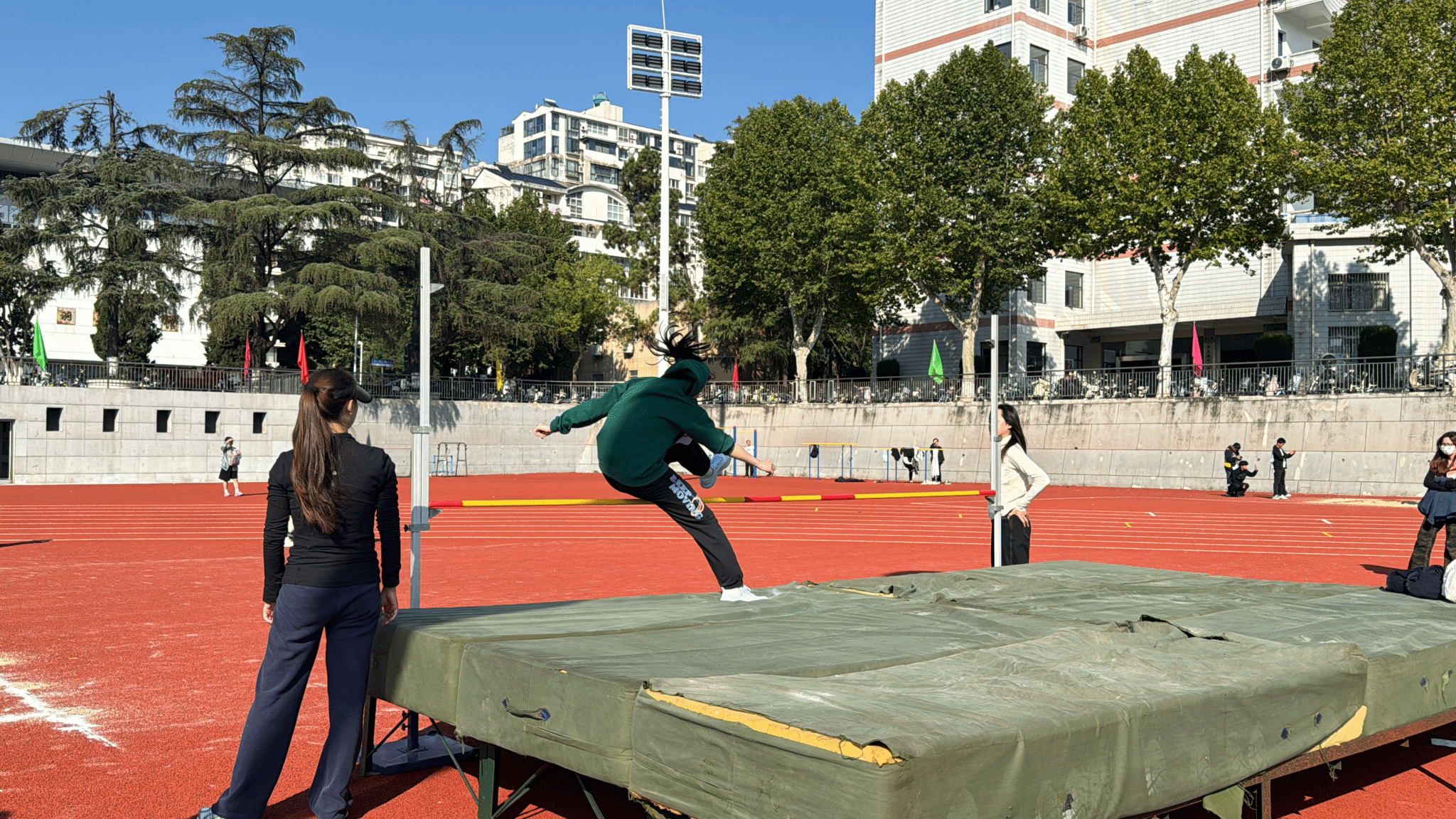 跳高场地上,面对不断上升的横杆,杨曼越、周楚钰在这里展现了力量与美的结合,轻盈的助跑、有力的起跳、优美的过杆,每一个动作都是对自我能力的超越;沈子翔每一次助跑、起跳都凝聚着全部精力,优美的过杆动作背后,是他不断挑战自我的勇气与决心。
