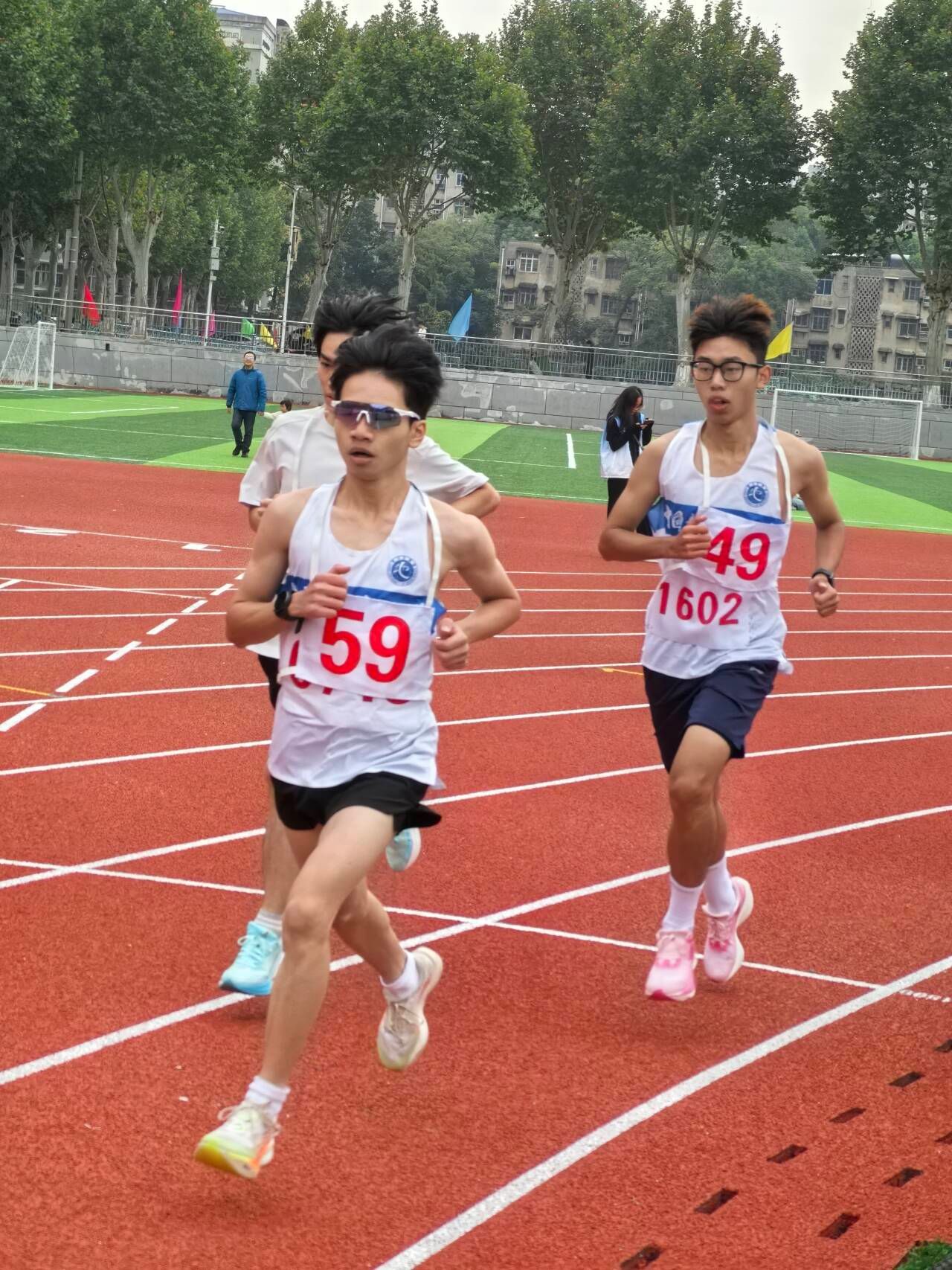 女子200米赛场上,苗馨元、周楚钰从起跑加速到终点冲刺,她们将青春的活力在短短的赛程中尽情释放。女子400米赛场上,郭梦菡以自信的节奏掌控着比赛进程,用勇气和实力完美诠释了女性运动员的刚柔并济,勇夺第一名的好成绩。女子800米赛道上,邓婕凭借出色的速度和耐力一路领先,最终摘得桂冠;王宏妍同样全力以赴,用坚持和努力为比赛增添了别样的光彩。女子1500米的赛场上,阿依则巴、张子怡展现了令人动容的毅力,用实际行动诠释了体育精神的深刻内涵,张子怡同学夺得第八名的成绩。漫长的5000米赛道是对意志力的终极考验,刘恒通、曲浩文在十二圈半的征程中,用汗水在跑道上刻下了不屈的奋斗足迹。男子1500米赛场上,阮航、曲浩文用每一个步伐书写着对胜利的执着追求。男子400米短跑中,赵硕文从起跑到冲刺一气呵成,每一个步伐都充满力量,留下了自己的速度宣言,最终获得第八名的成绩。