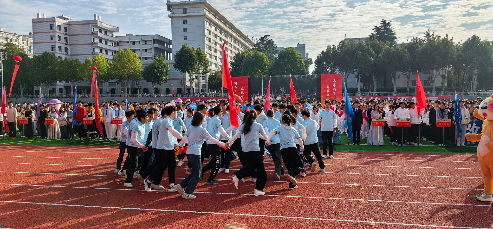 凉风送爽,秋意初绽,一年一度的校运会在南望山下如期举行。运动场上人山人海,各院学子齐聚一堂,共同见证这场活力盛宴的盛大开幕。