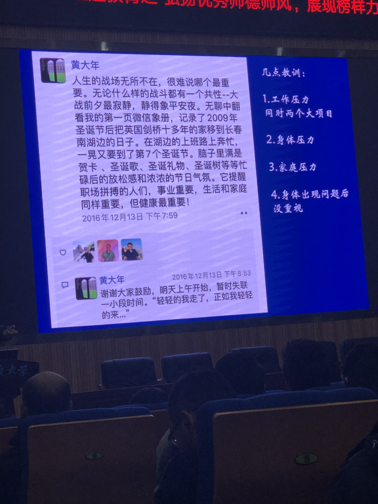 孟大维教授说:“他决定回国后毅然放弃一切,甚至“威胁”妻子离婚,平安夜对于黄大年而言,一直都有着特殊的意义。2009年的平安夜,他放弃了在英国优越的工作和生活条件,踏上了回国的航班。”