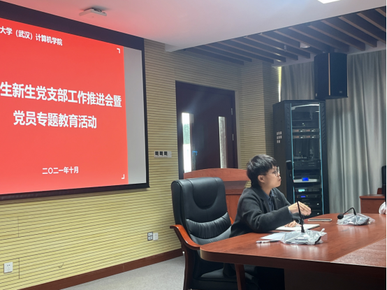 (通讯员:汪舟天)为进一步加强对新生党员的教育培养,提高学生党员干部素质能力和工作本领,充分发挥学生党支部战斗堡垒作用,我院于10月22日在323会议室开展新生党支部工作推进会暨党员专题教育活动。院团委书记、研究生辅导员李欢欢,兼职辅导员杨雯绚以及2021级硕士预备党员和学生党支部书记参会,李欢欢担任主持。
