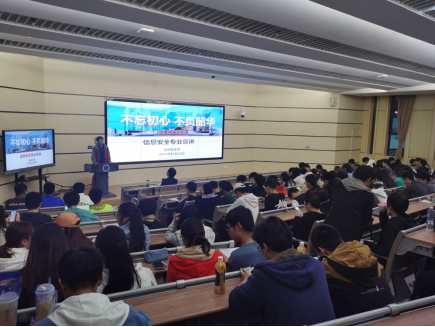 (通讯员:马钊)为深入贯彻落实学校党委《关于开展“我为群众办实事”实践活动》的通知,帮助我院计算机大类学生们更好的了解专业方向、认识专业内涵,确立人生的重要目标,激励学生们更好的学习,2021年10月28日晚上19:00,在未来城公教2-101教室,信息安全系教师党支部成功举办了一场以“不忘初心,不负韶华”为主题的信息安全专业方向宣讲会。